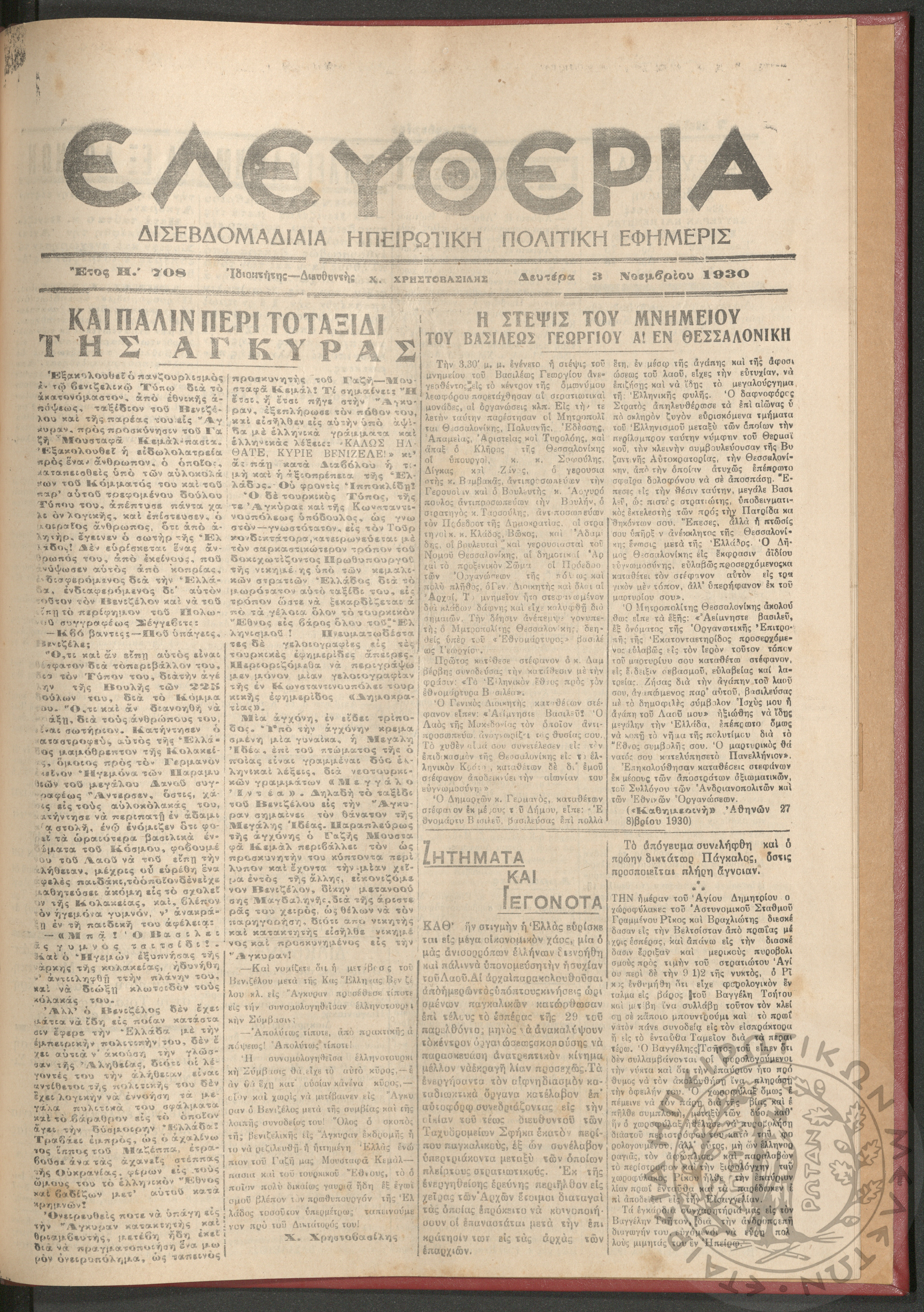 Ελευθερία: δισεβδομαδιαία Ηπειρωτική πολιτική εφημερίς, 1930, φ. 708