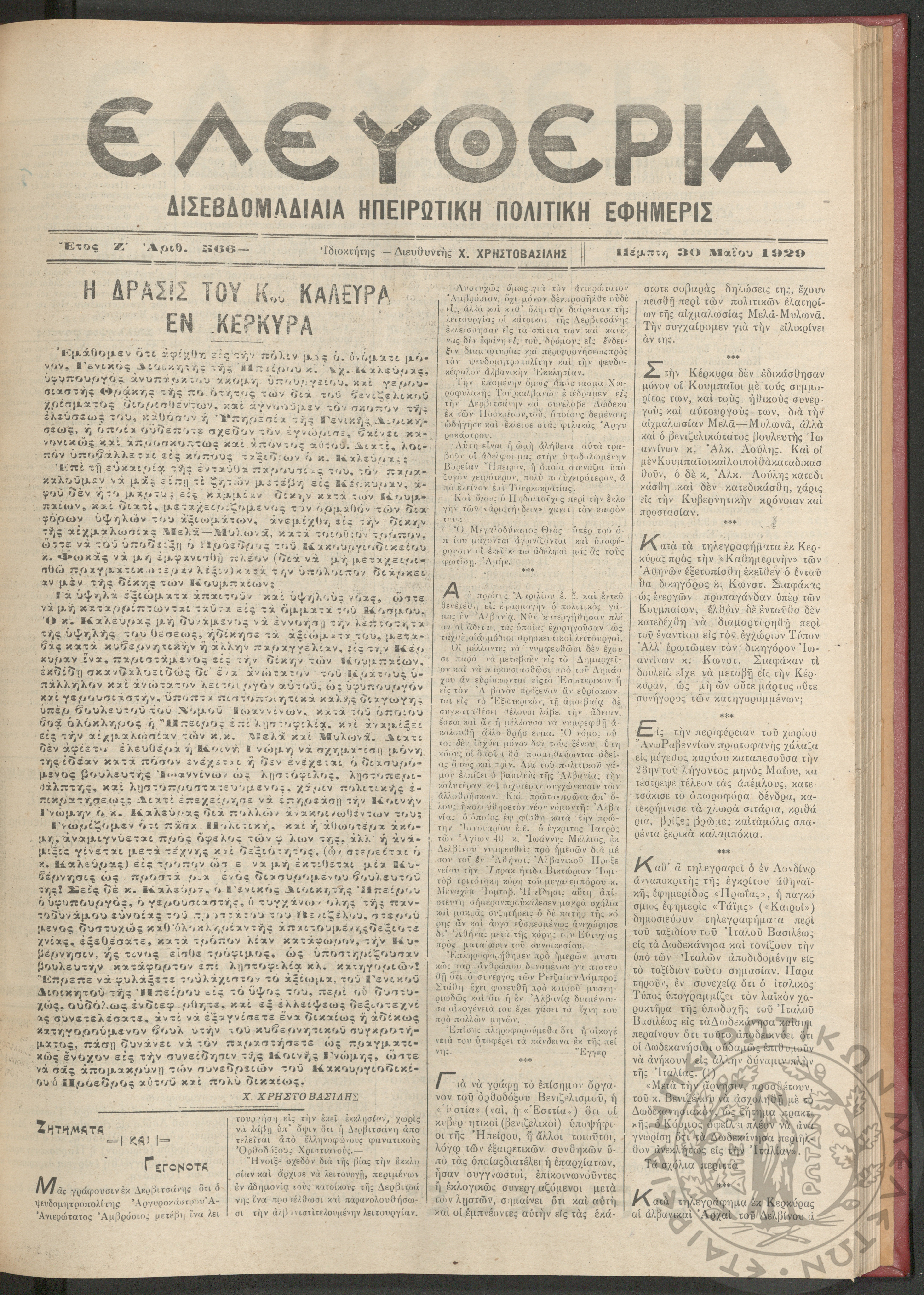 Ελευθερία: δισεβδομαδιαία Ηπειρωτική πολιτική εφημερίς, 1929, φ. 566