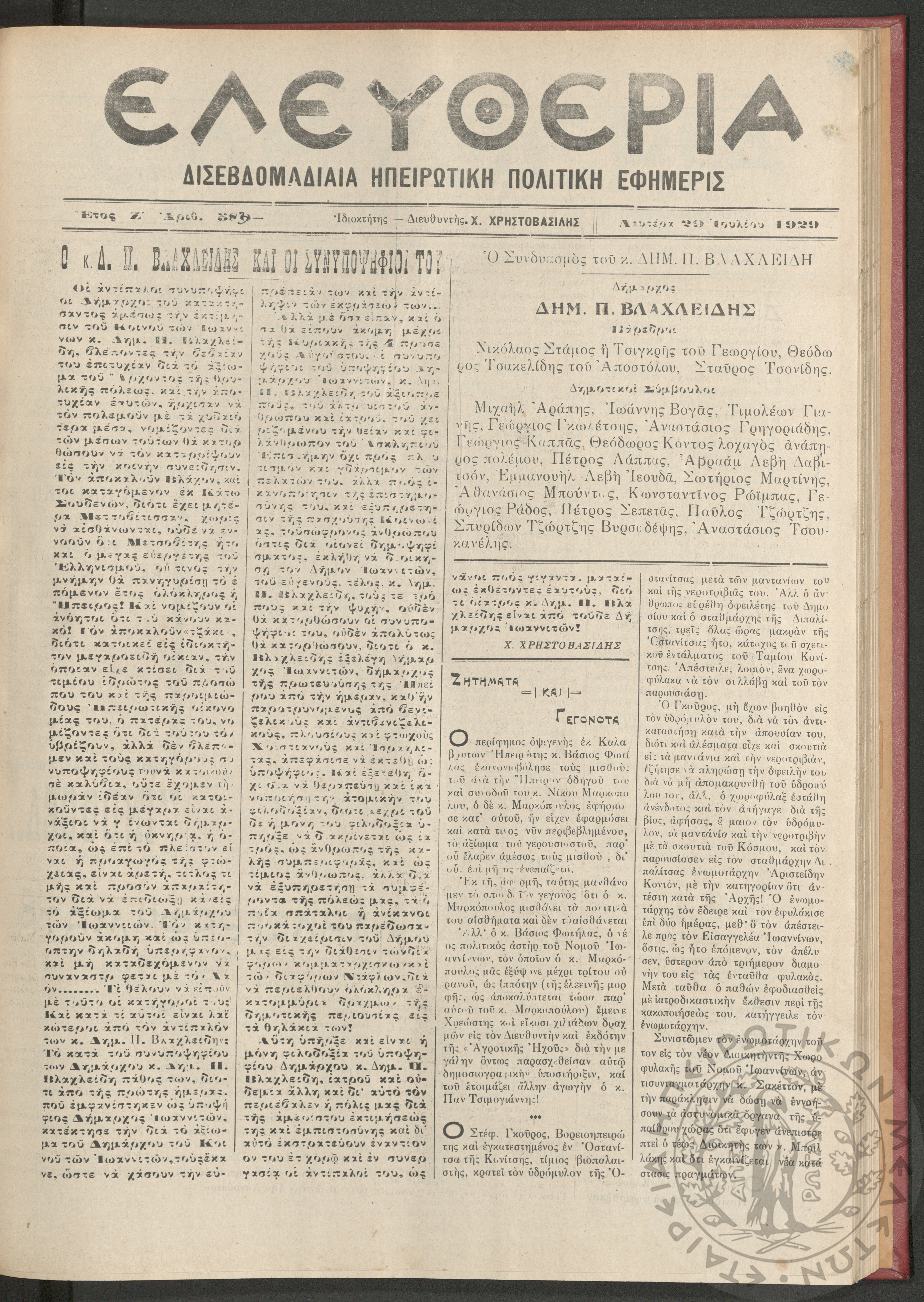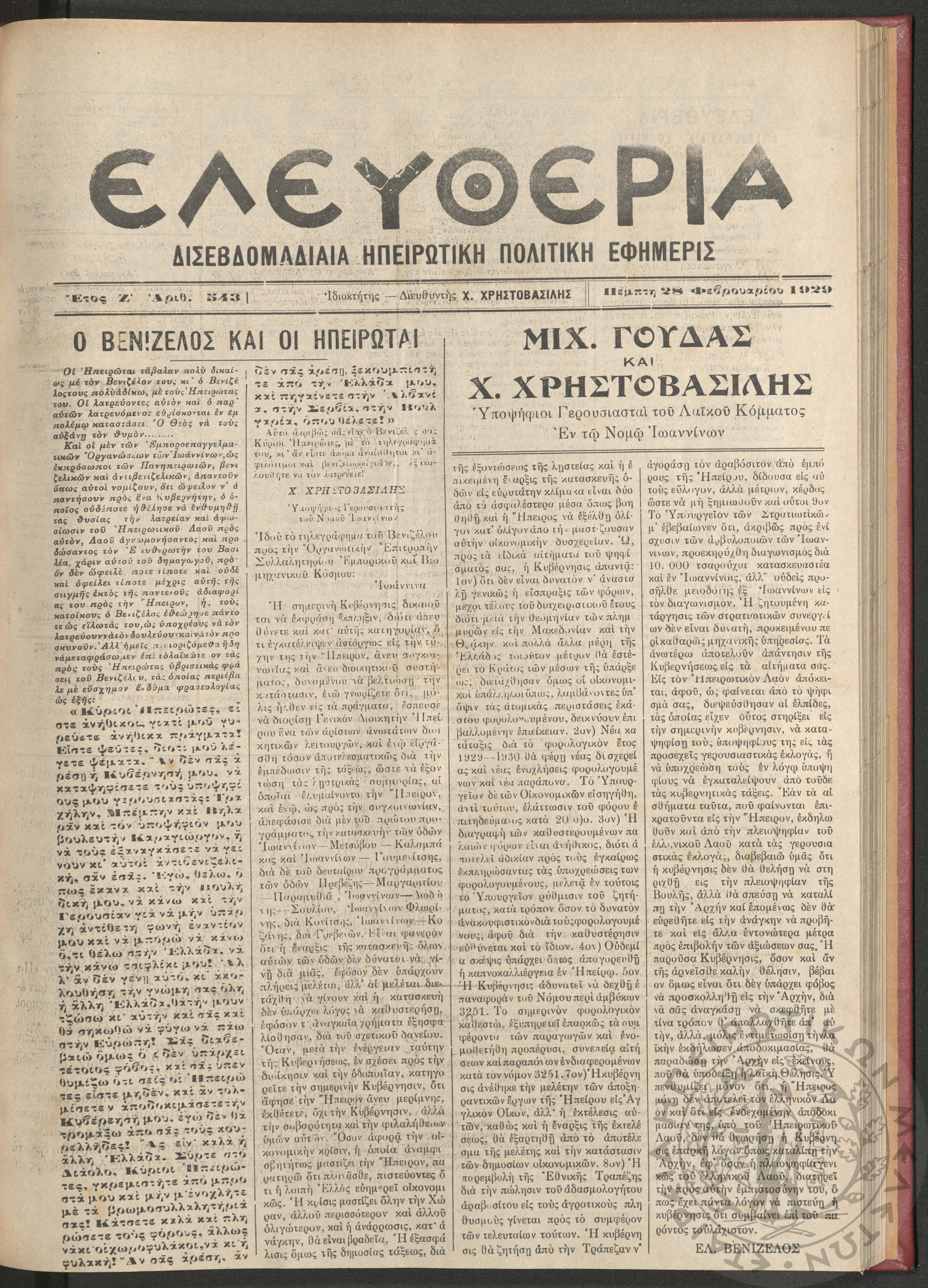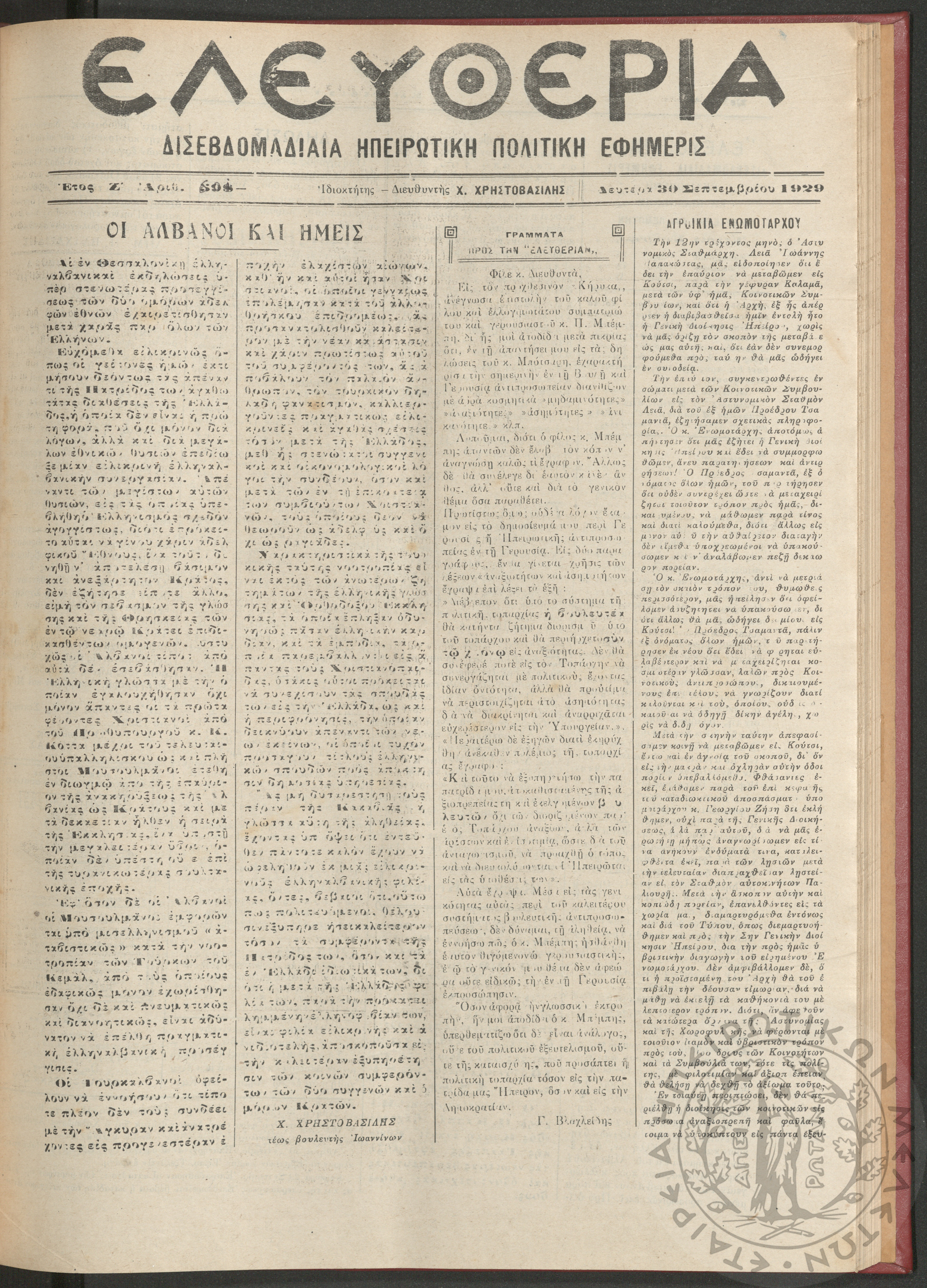 Ελευθερία: δισεβδομαδιαία Ηπειρωτική πολιτική εφημερίς, 1929, φ. 583