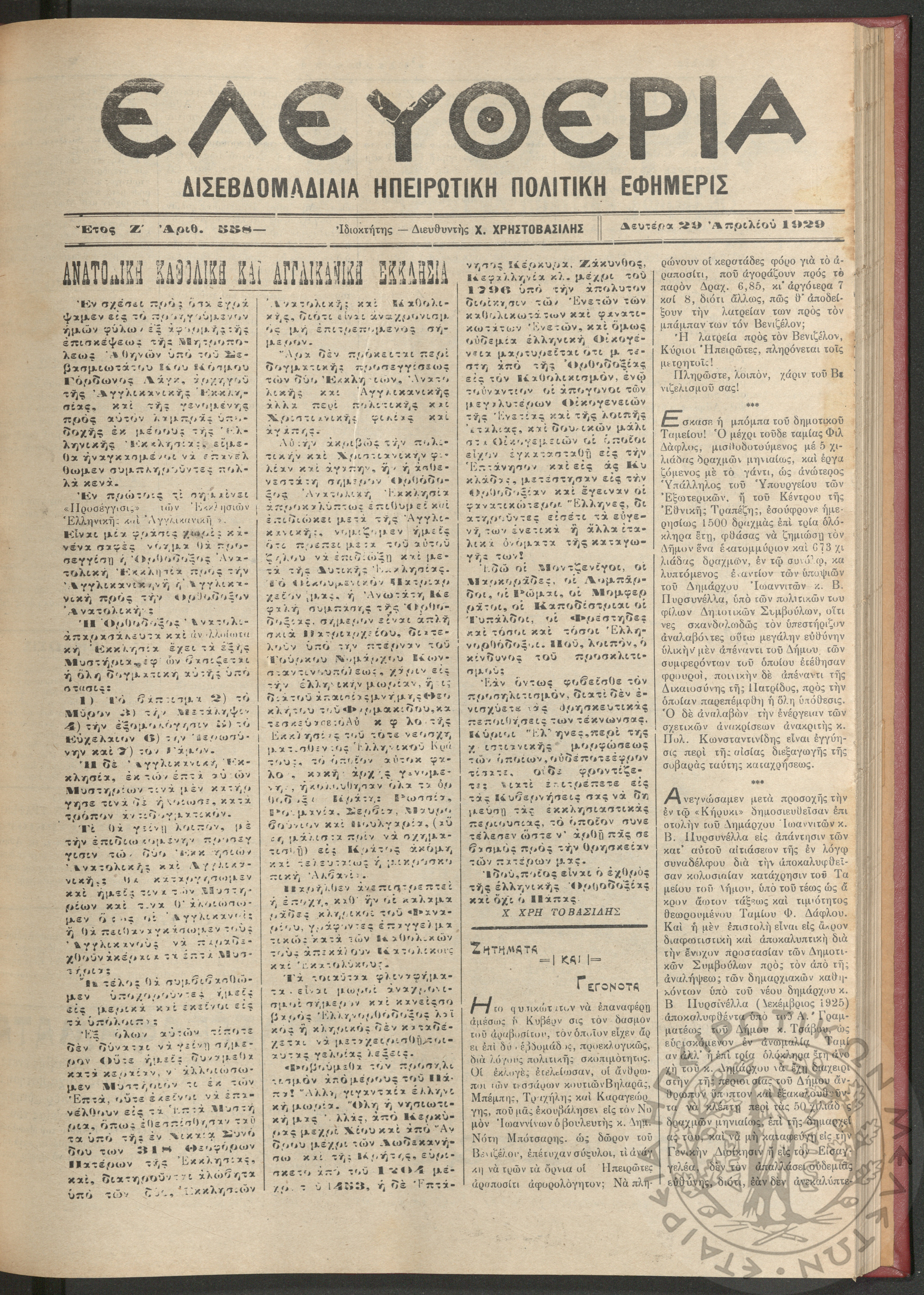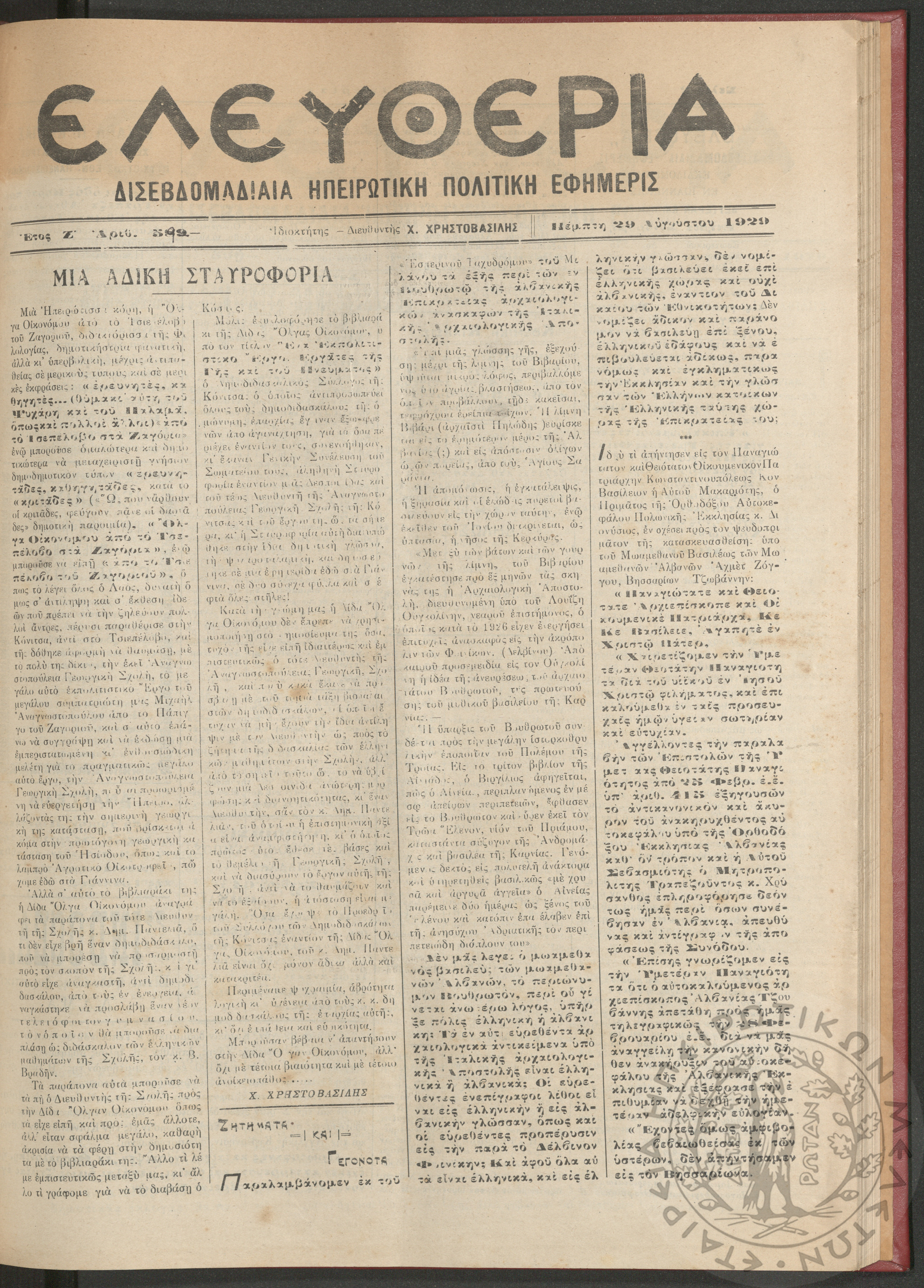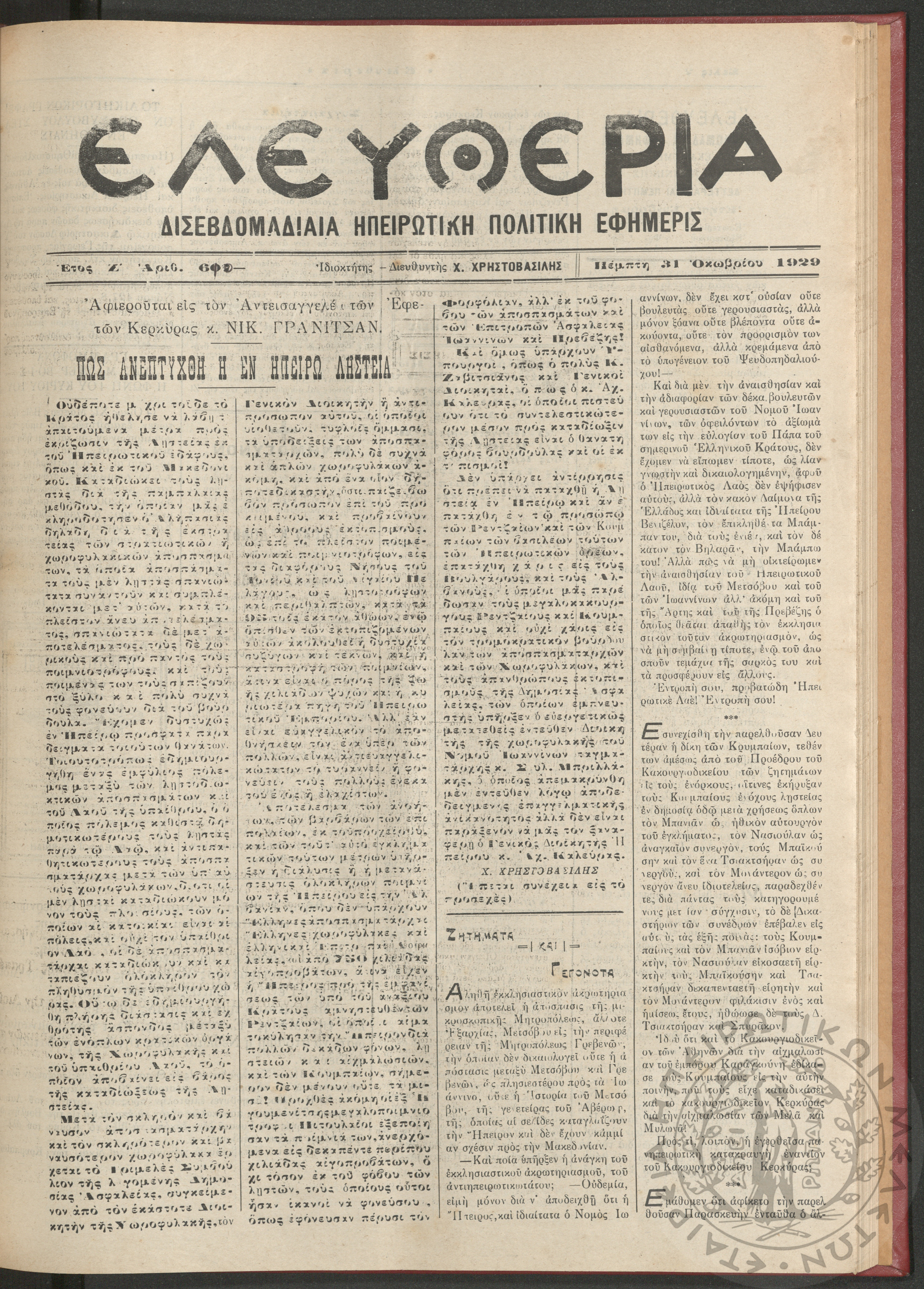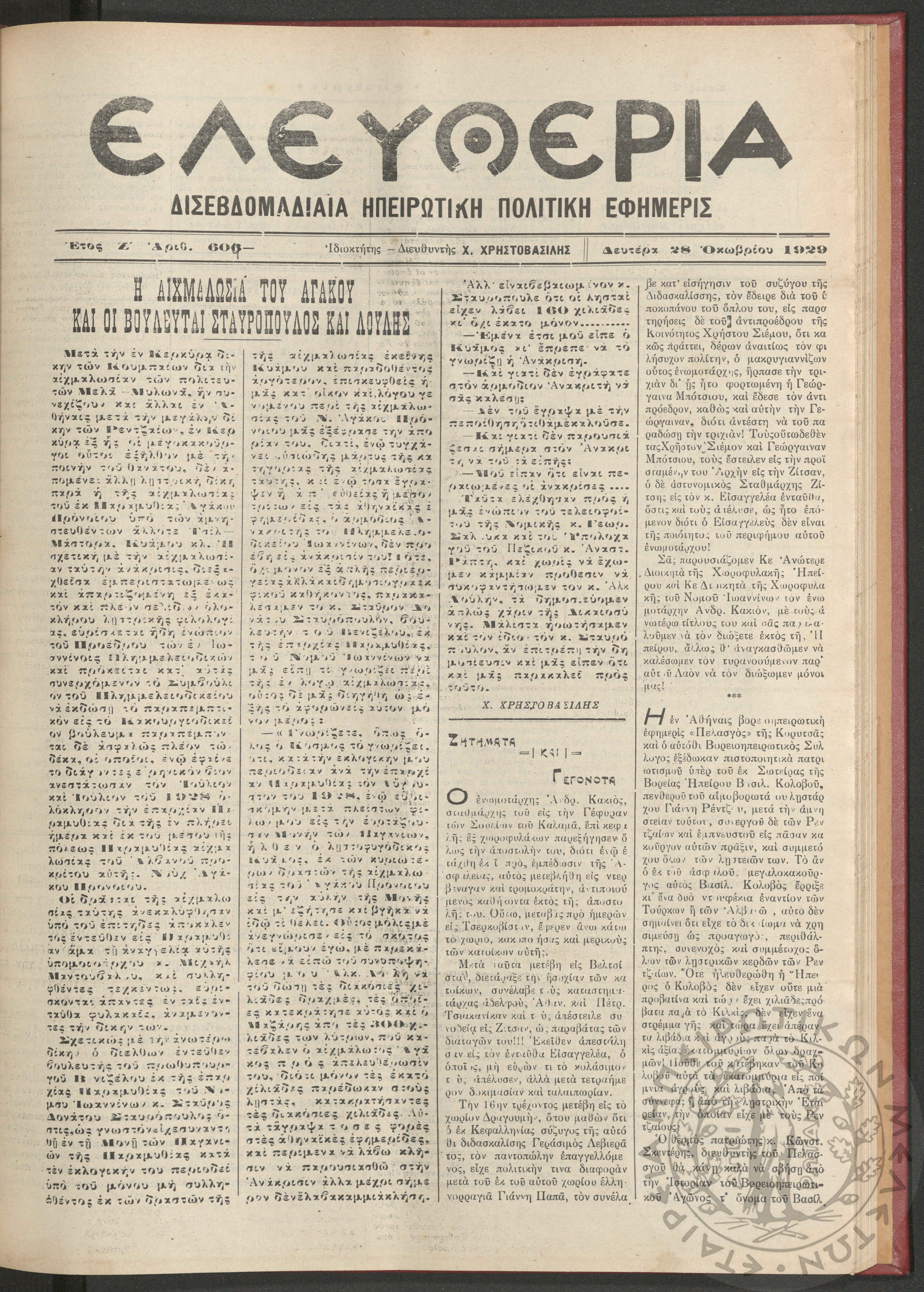Ελευθερία: δισεβδομαδιαία Ηπειρωτική πολιτική εφημερίς, 1929, φ. 583