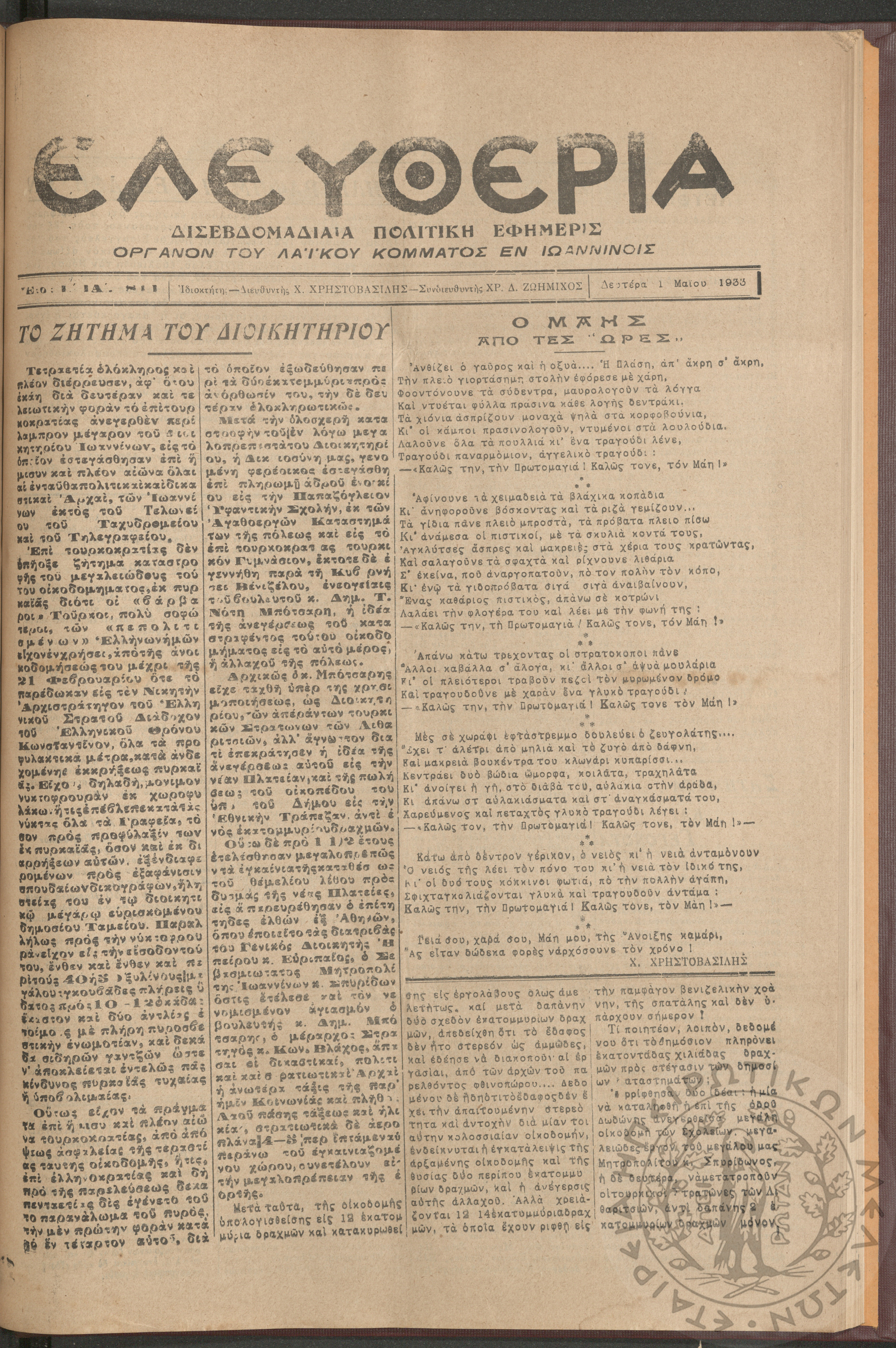 Ελευθερία: δισεβδομαδιαία Ηπειρωτική πολιτική εφημερίς, 1933, φ. 820