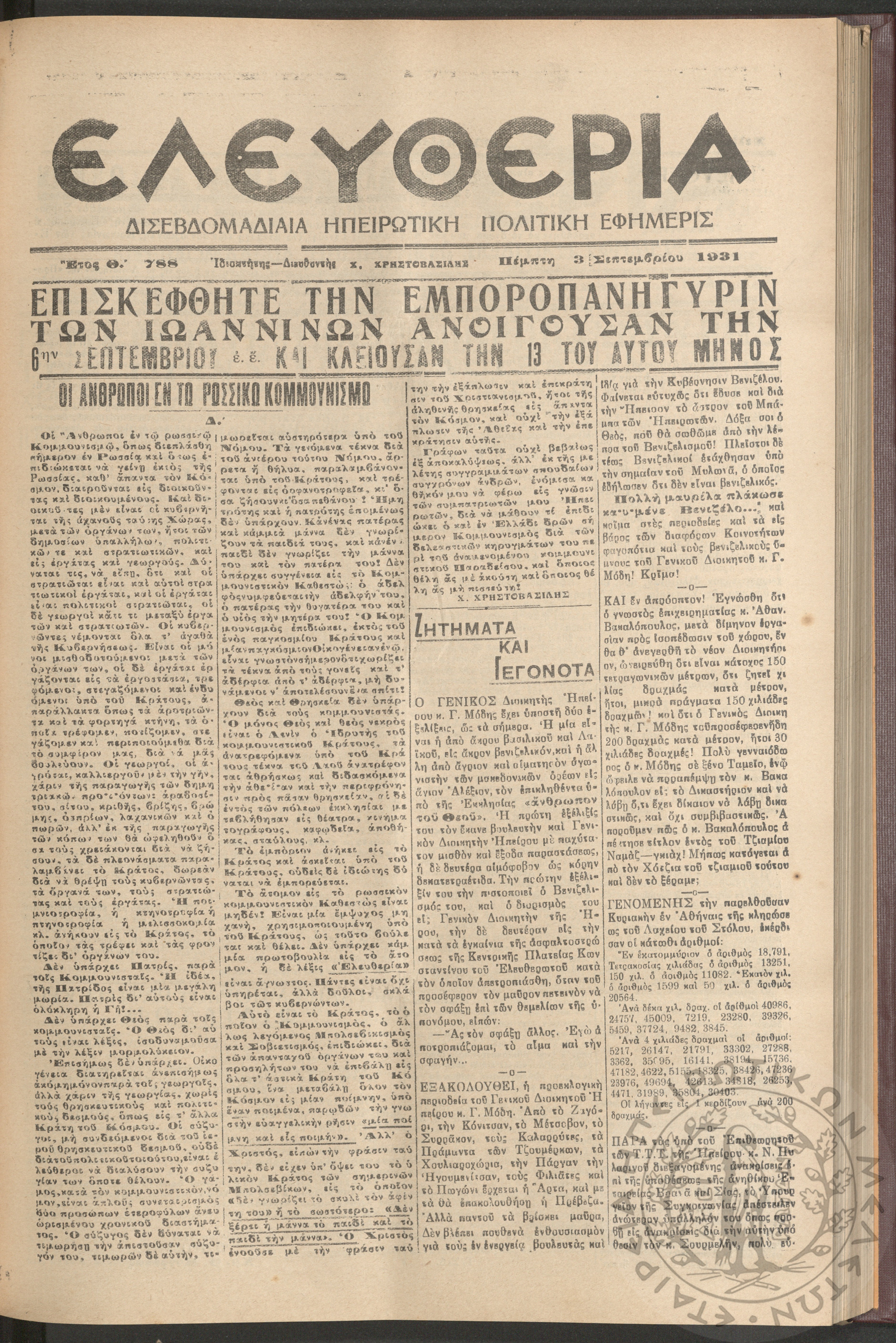 Ελευθερία: δισεβδομαδιαία Ηπειρωτική πολιτική εφημερίς, 1931, φ. 788