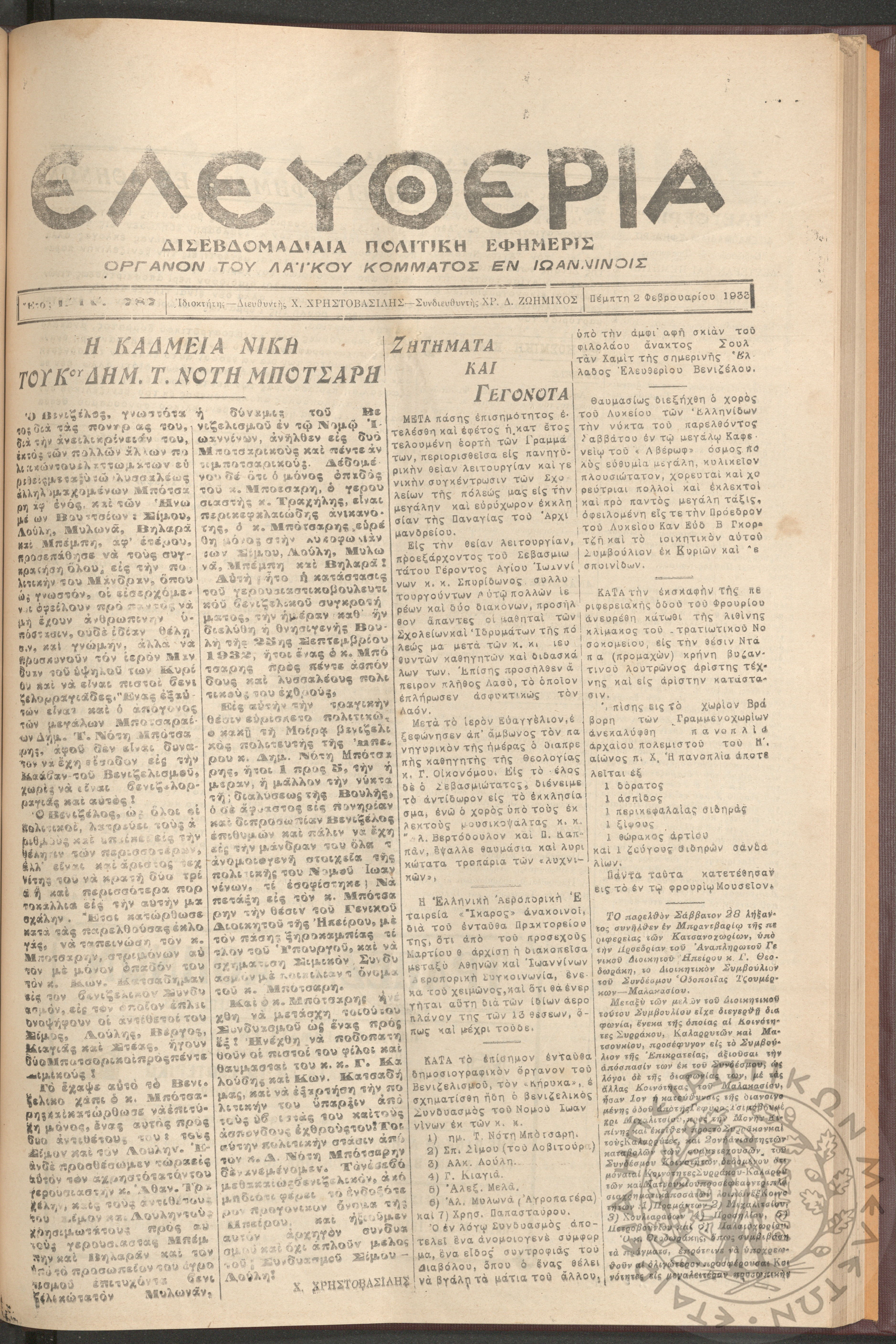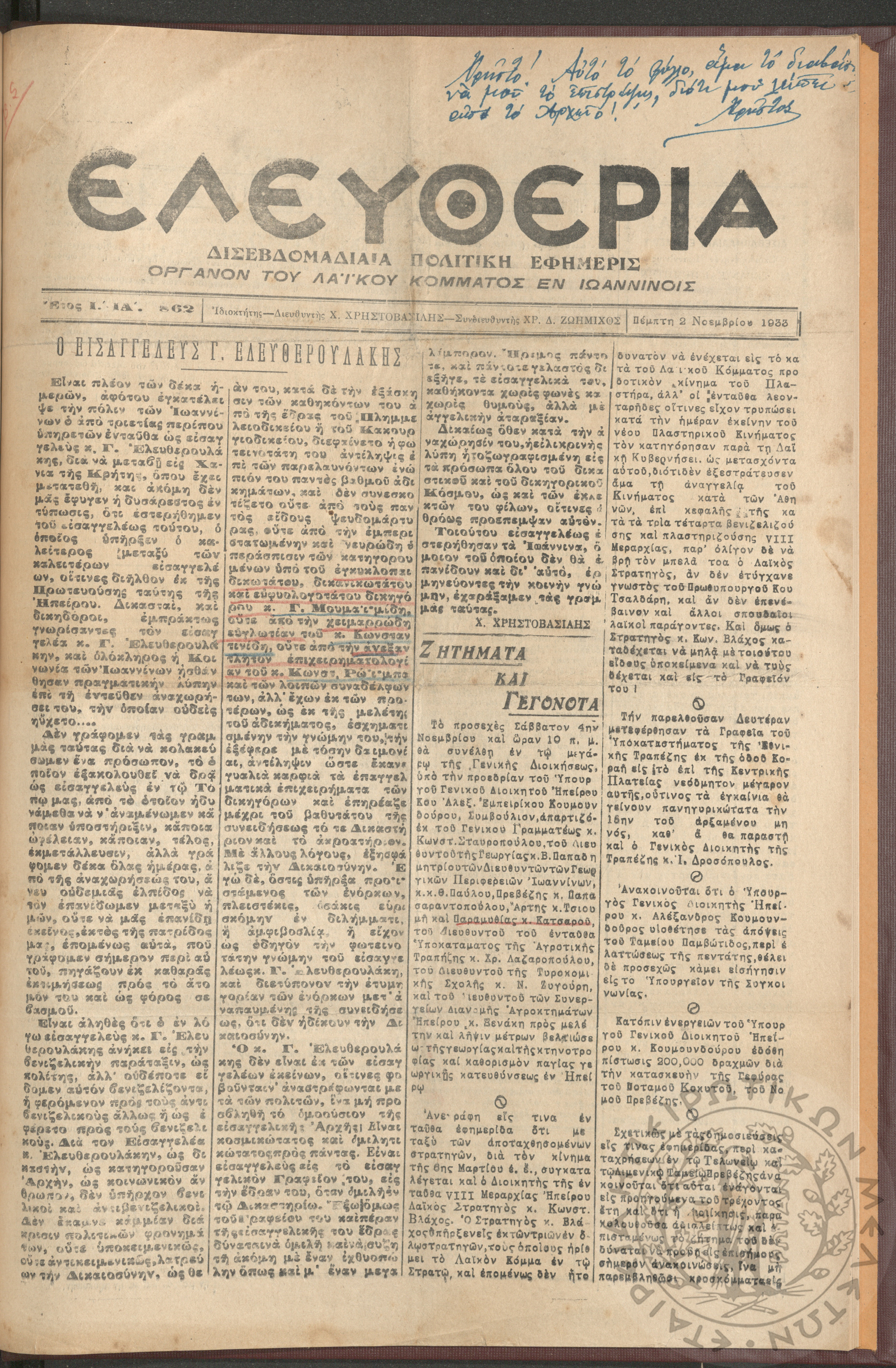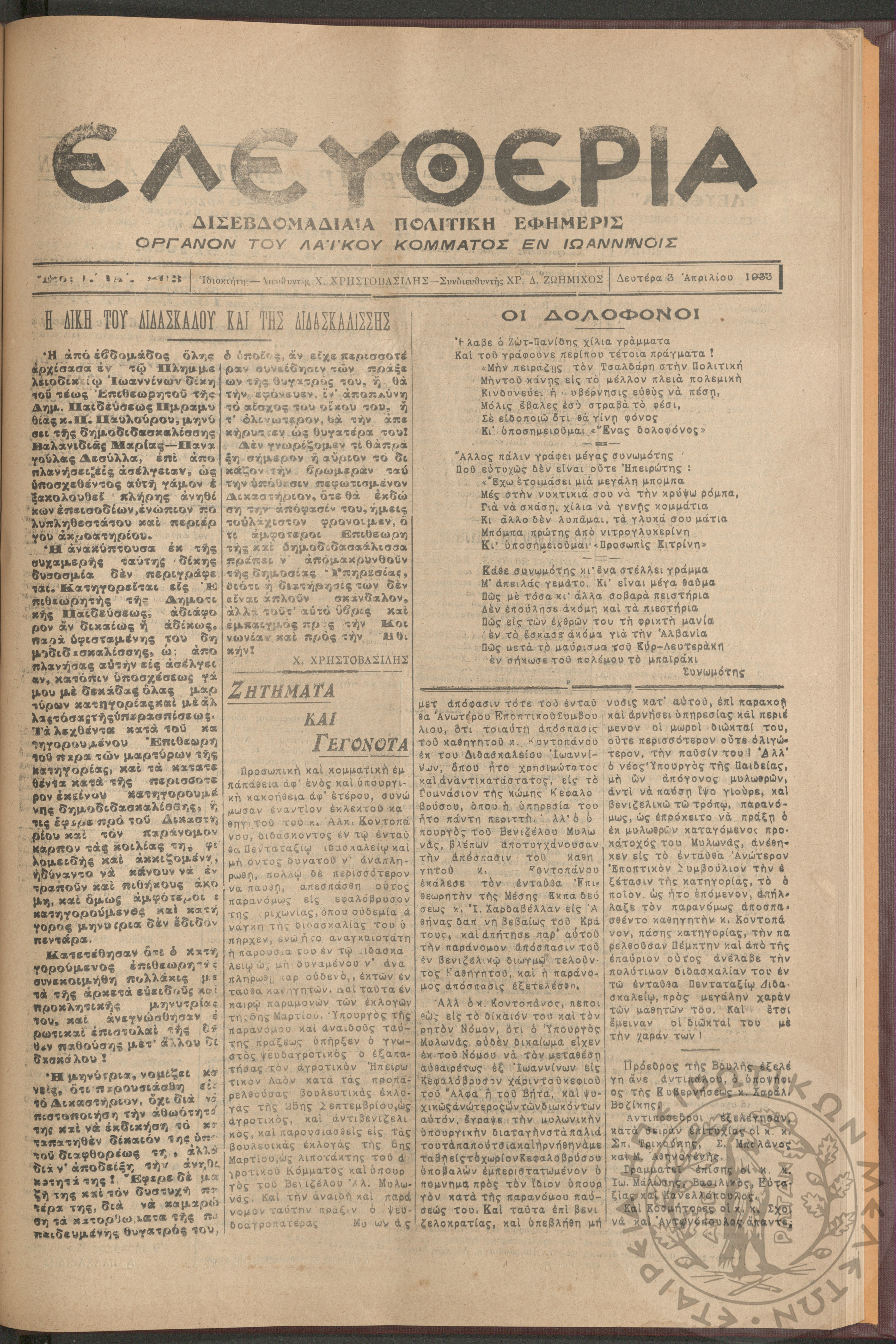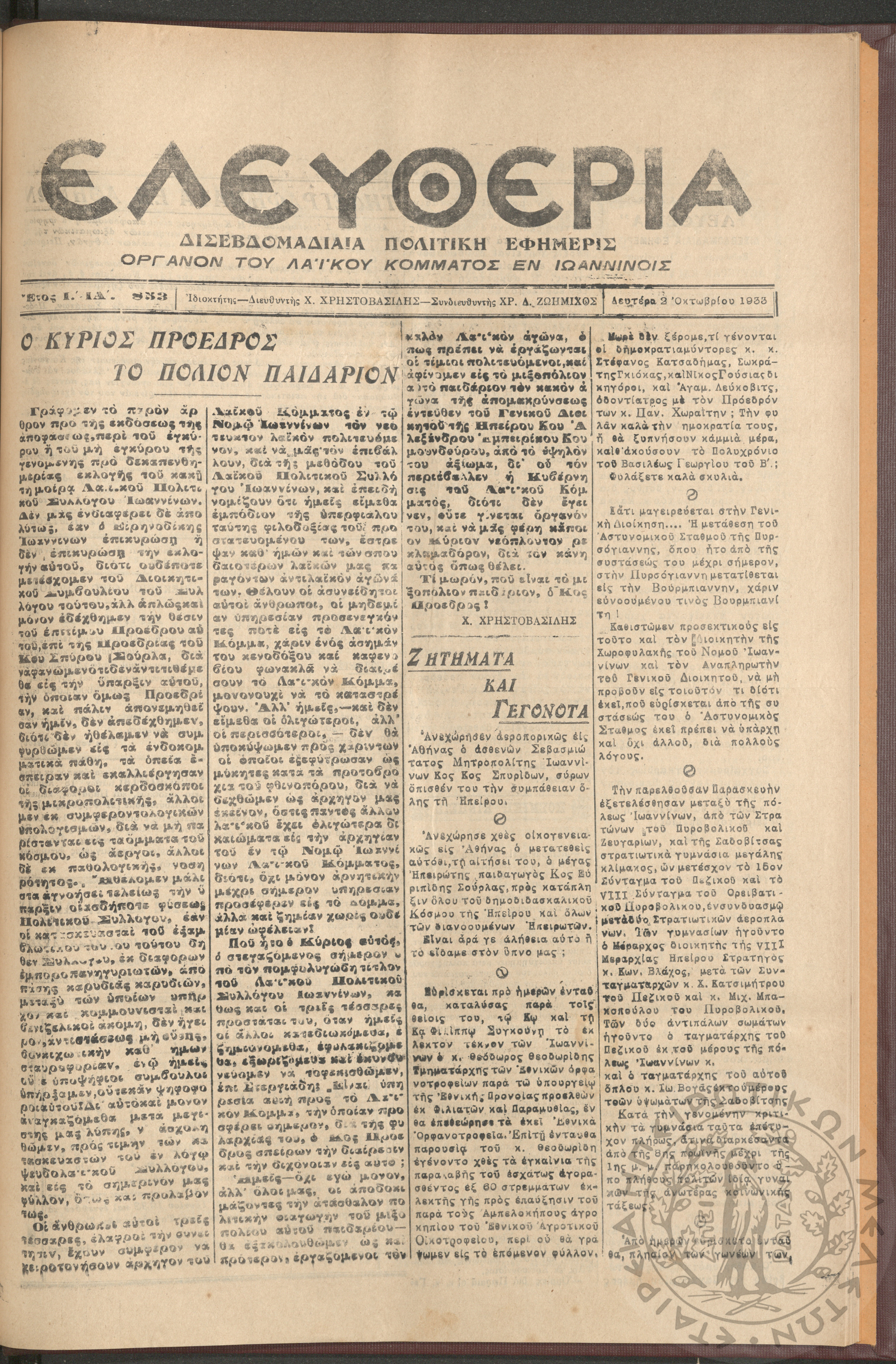 Ελευθερία: δισεβδομαδιαία Ηπειρωτική πολιτική εφημερίς, 1933, φ. 778