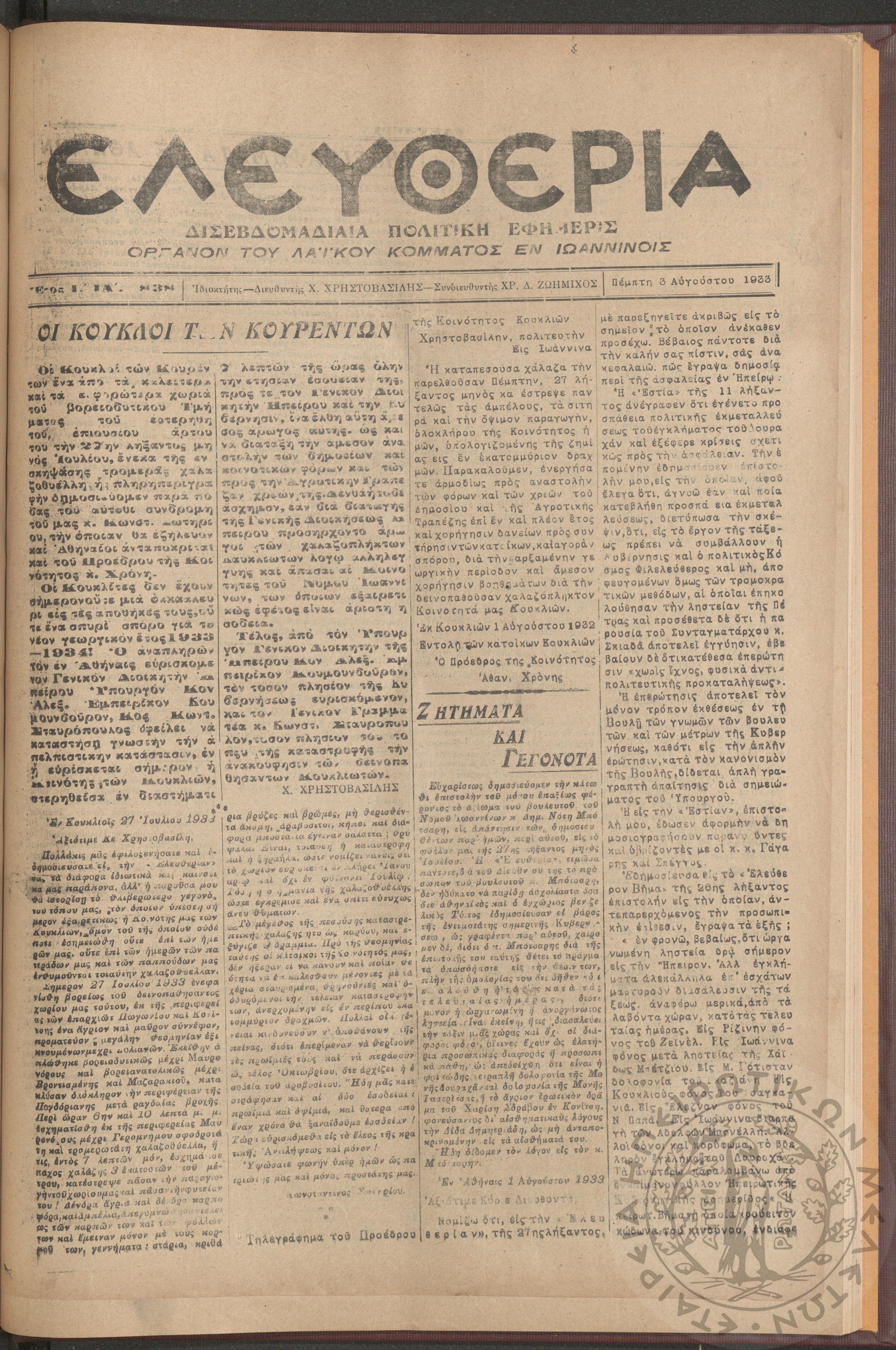 Ελευθερία: δισεβδομαδιαία Ηπειρωτική πολιτική εφημερίς, 1933, φ. 804