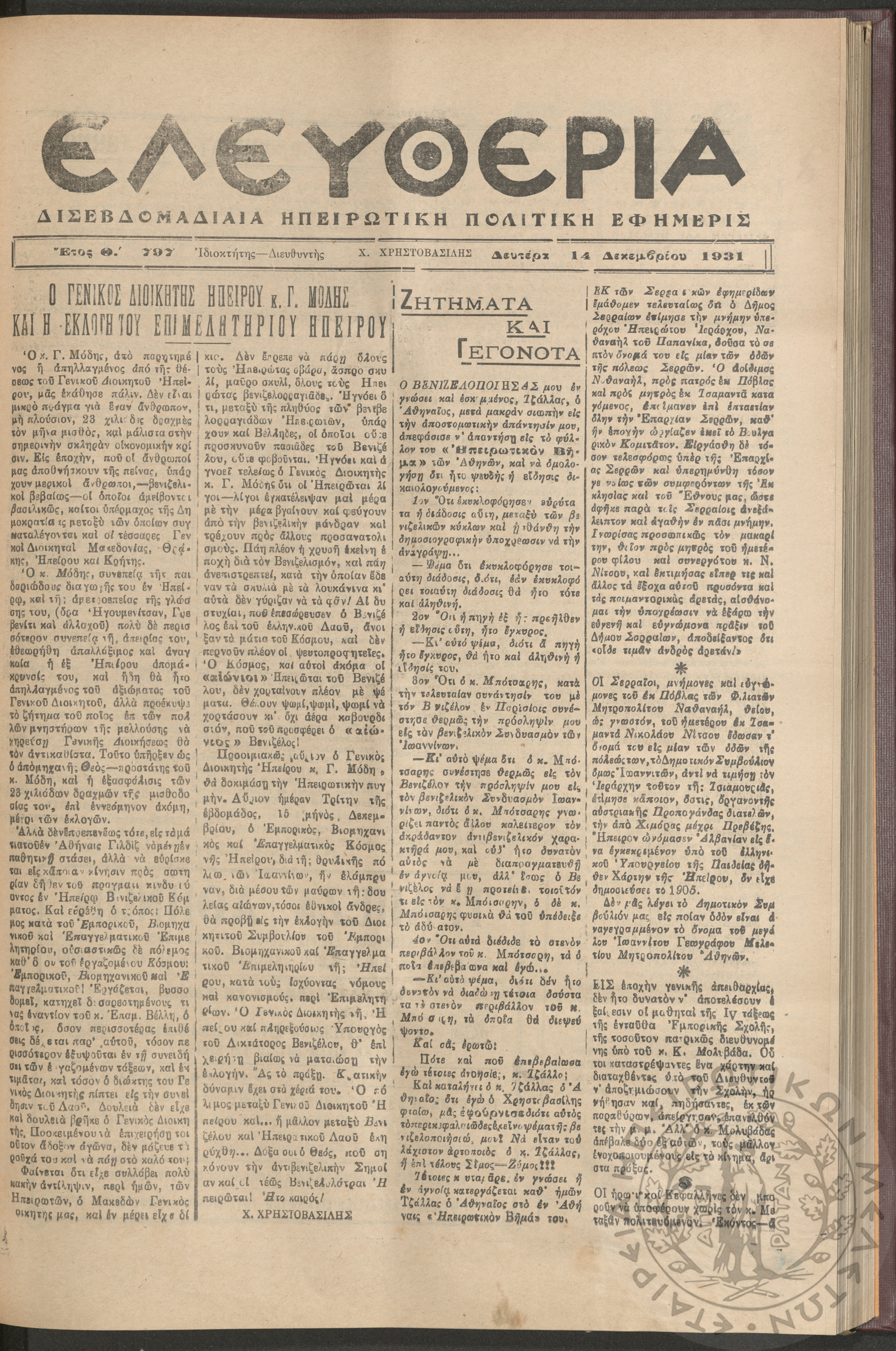 Ελευθερία: δισεβδομαδιαία Ηπειρωτική πολιτική εφημερίς, 1931, φ. 797