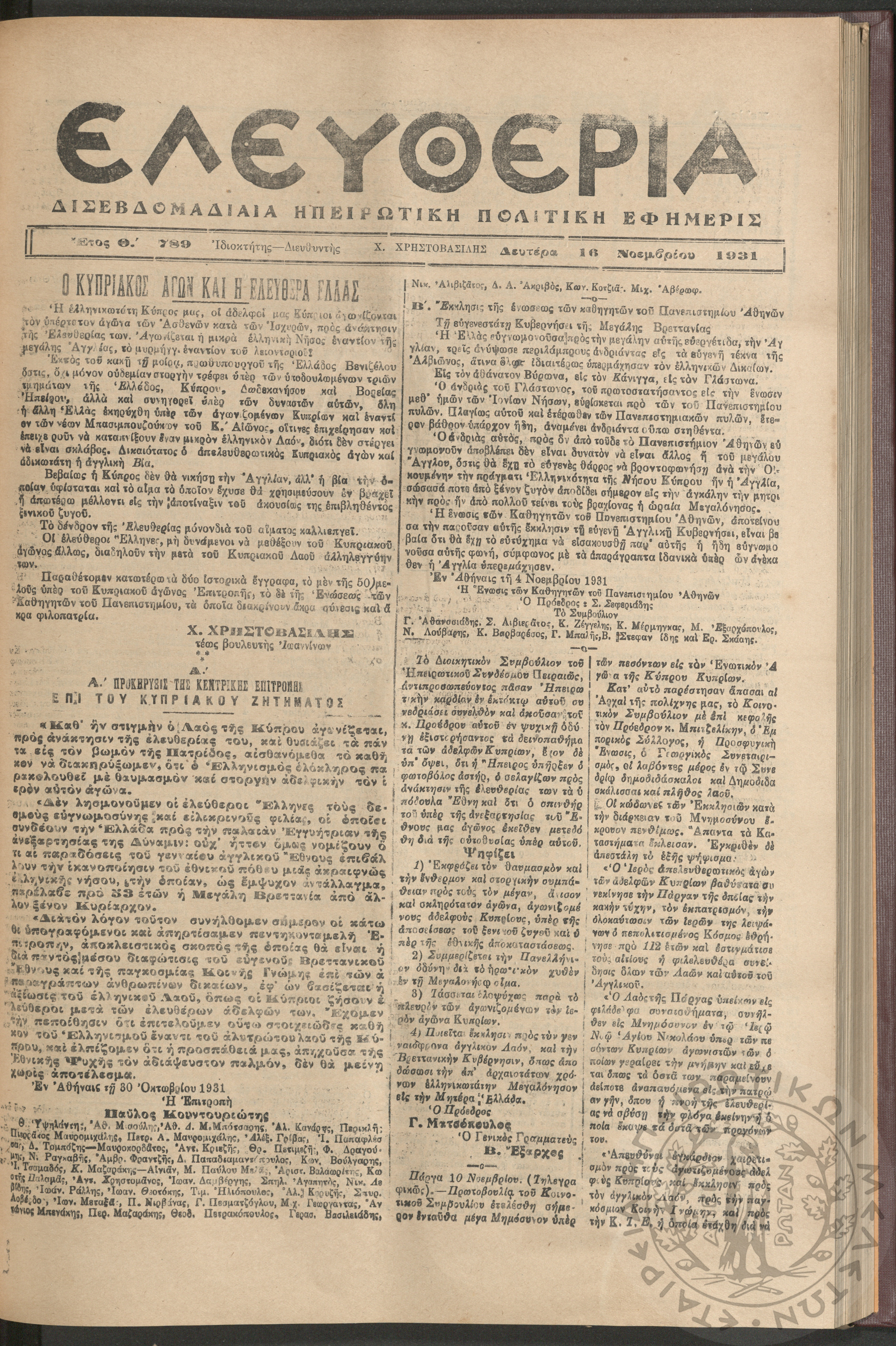 Ελευθερία: δισεβδομαδιαία Ηπειρωτική πολιτική εφημερίς, 1931, φ. 789