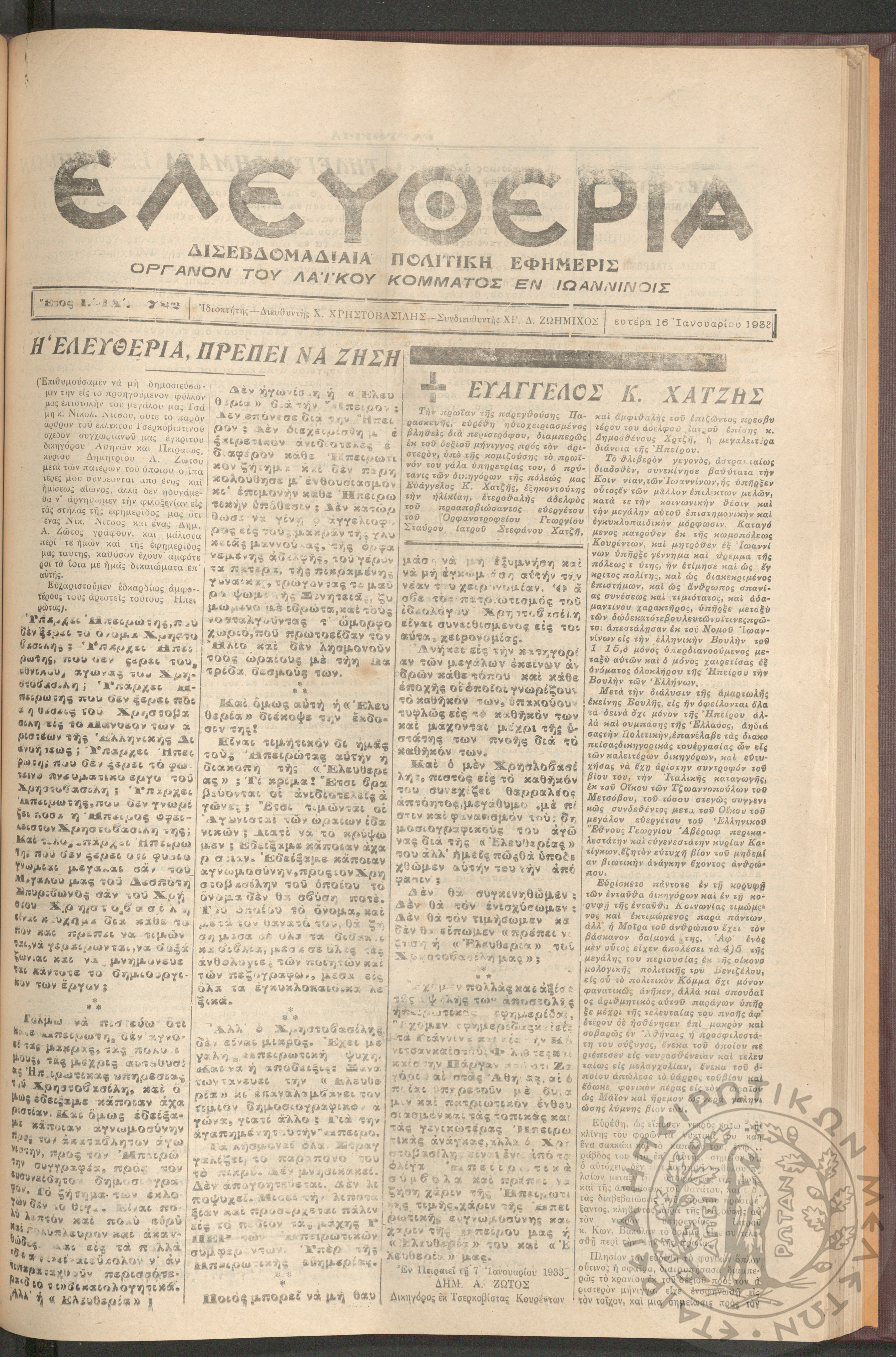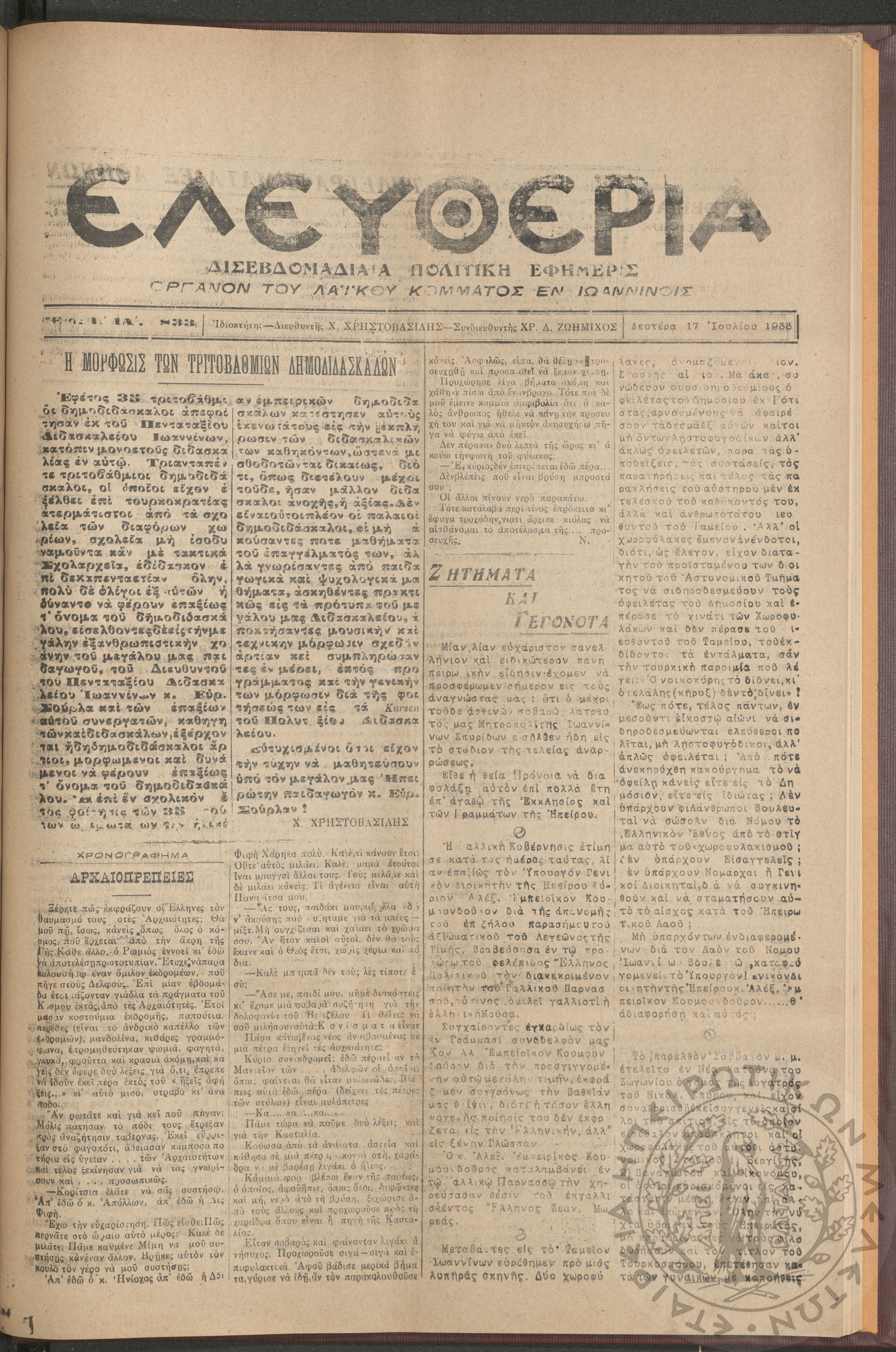 Ελευθερία: δισεβδομαδιαία Ηπειρωτική πολιτική εφημερίς, 1933, φ. 798
