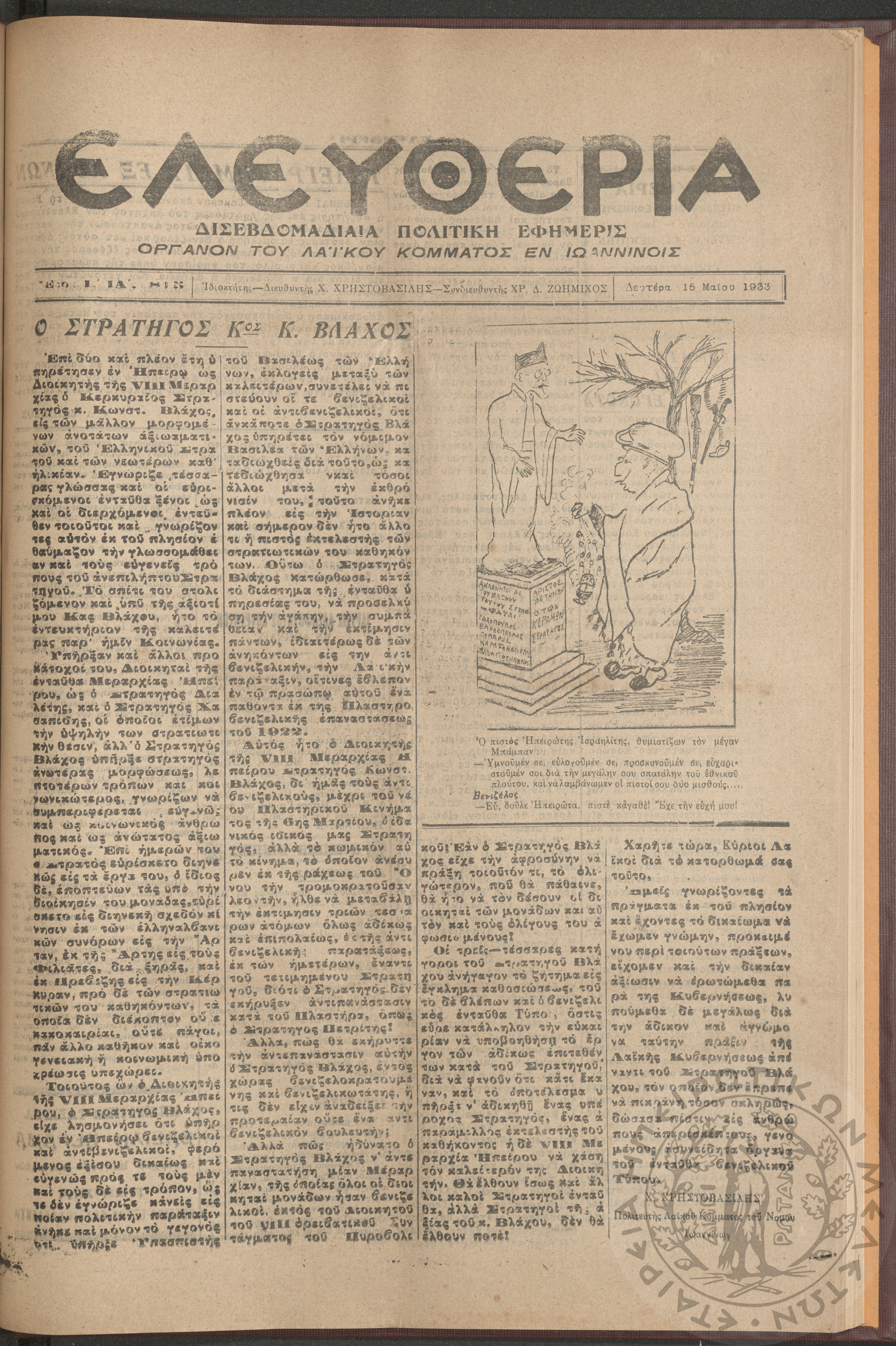 Ελευθερία: δισεβδομαδιαία Ηπειρωτική πολιτική εφημερίς, 1933, φ. 815