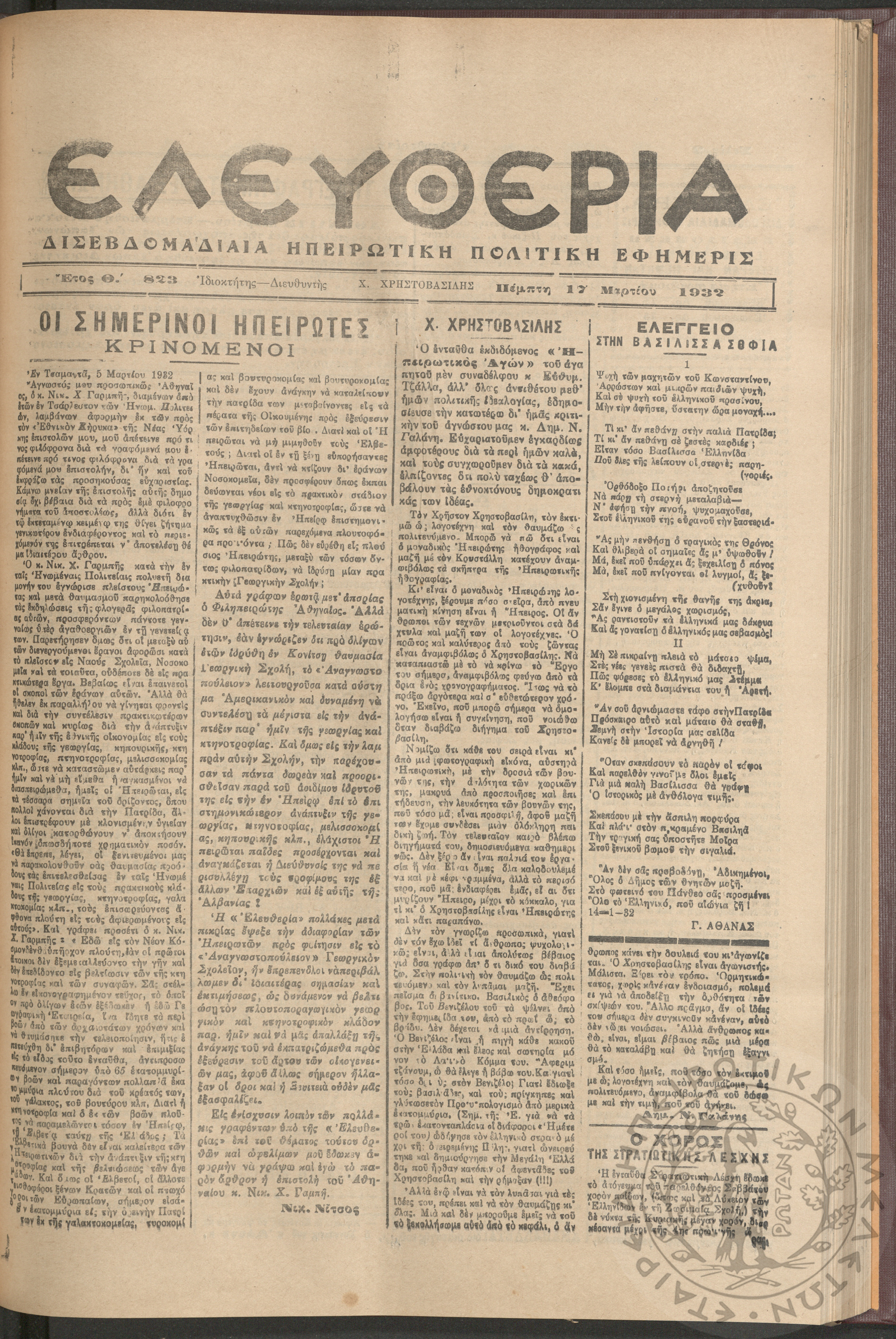 Ελευθερία: δισεβδομαδιαία Ηπειρωτική πολιτική εφημερίς, 1932, φ. 782