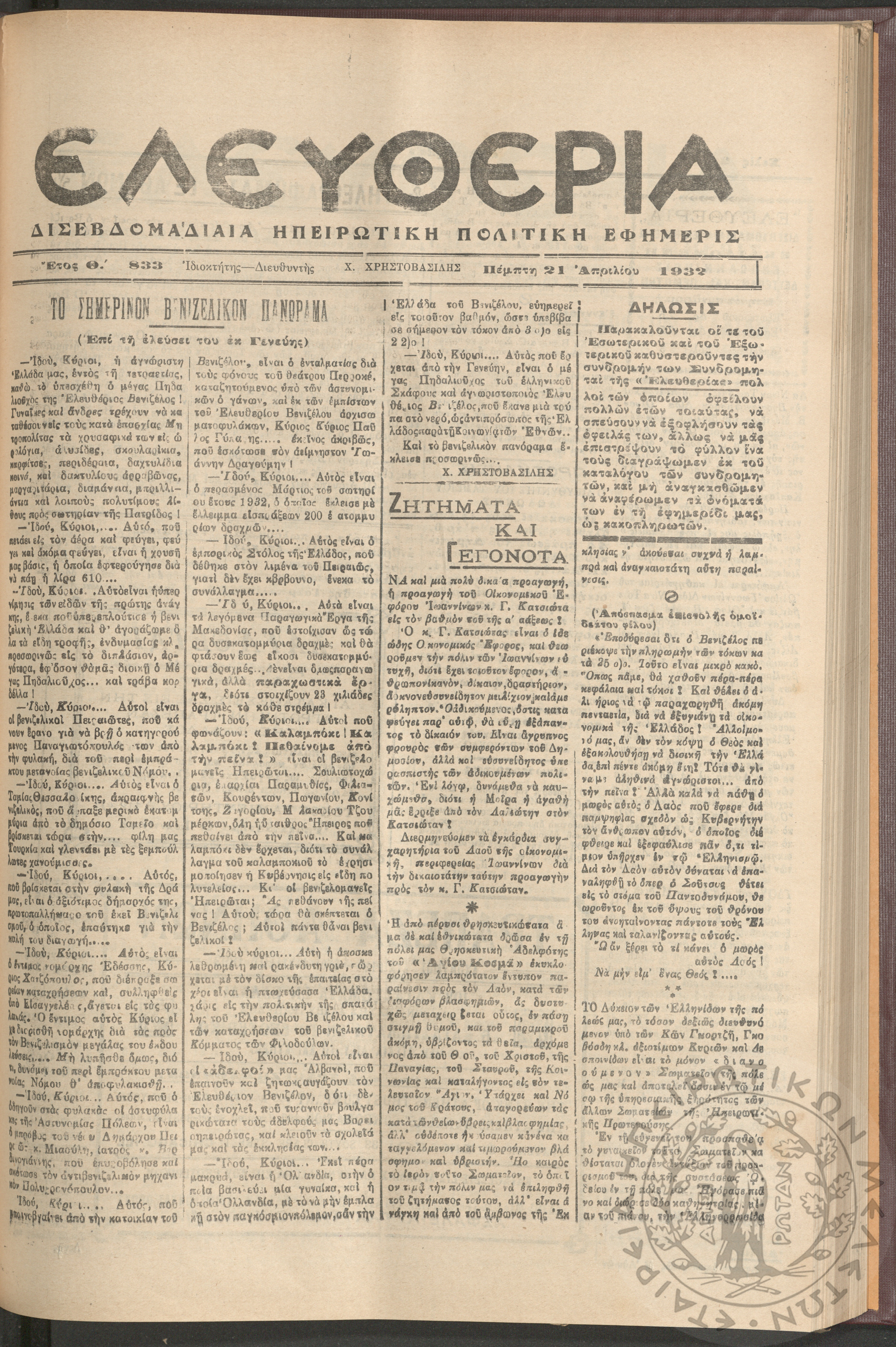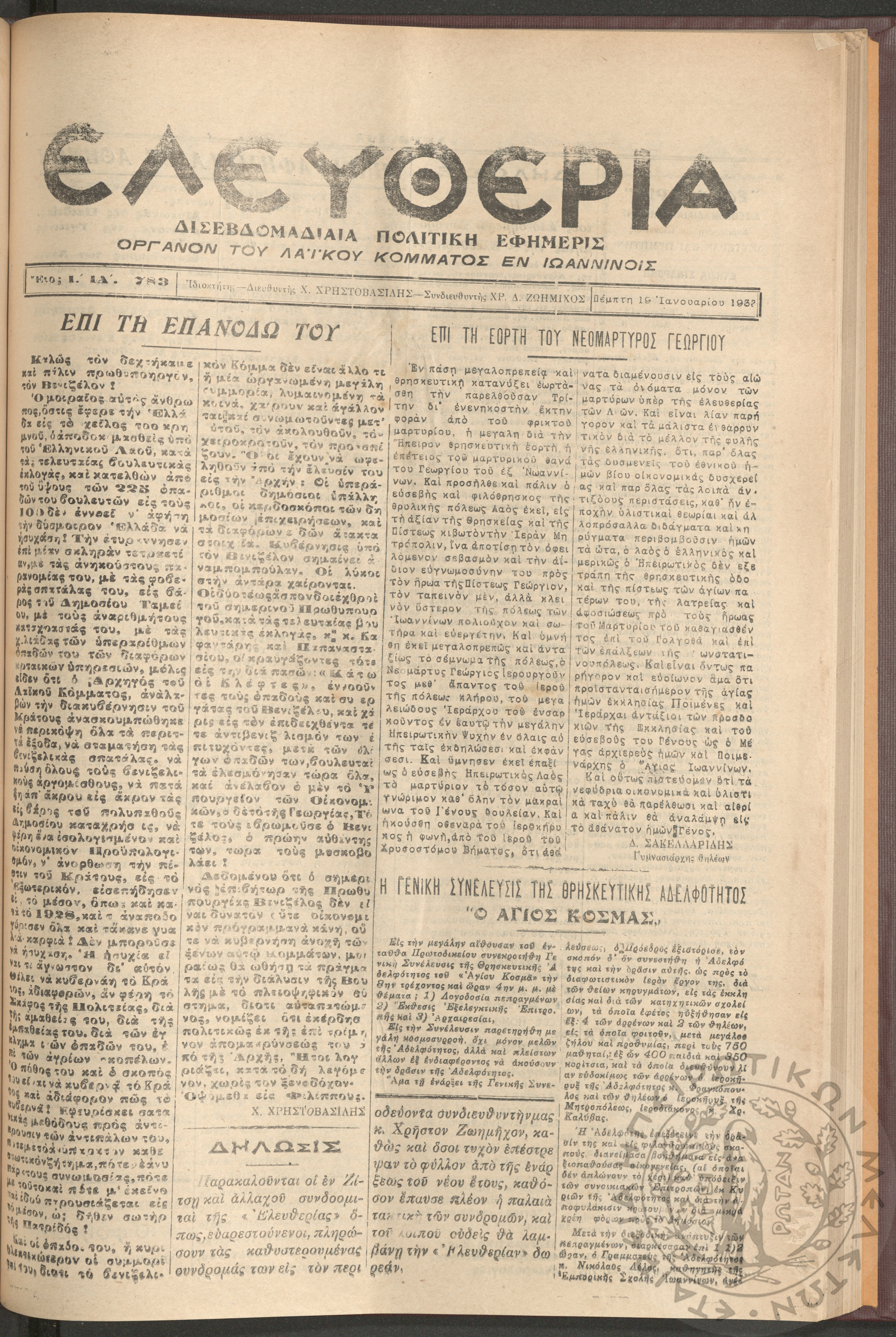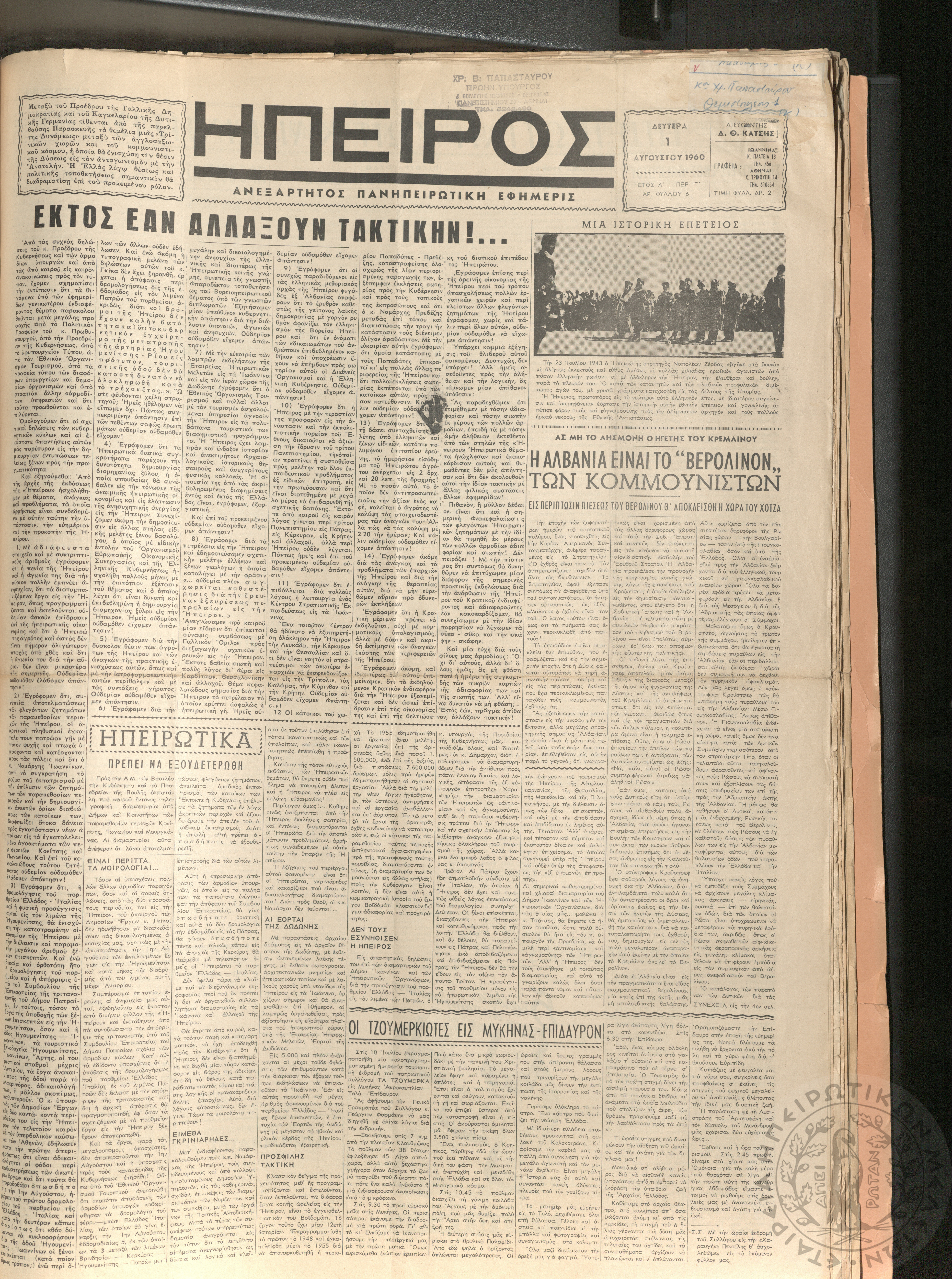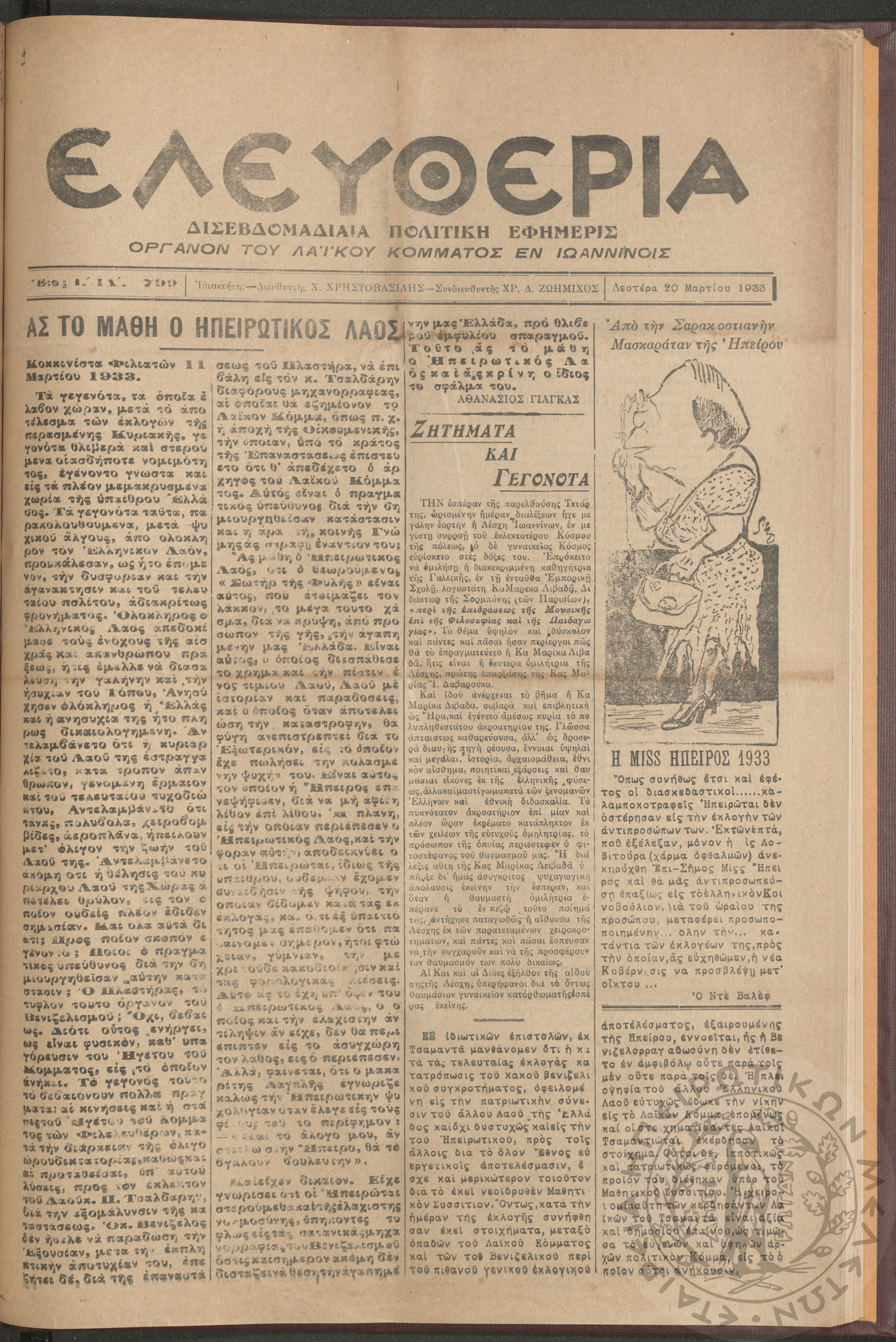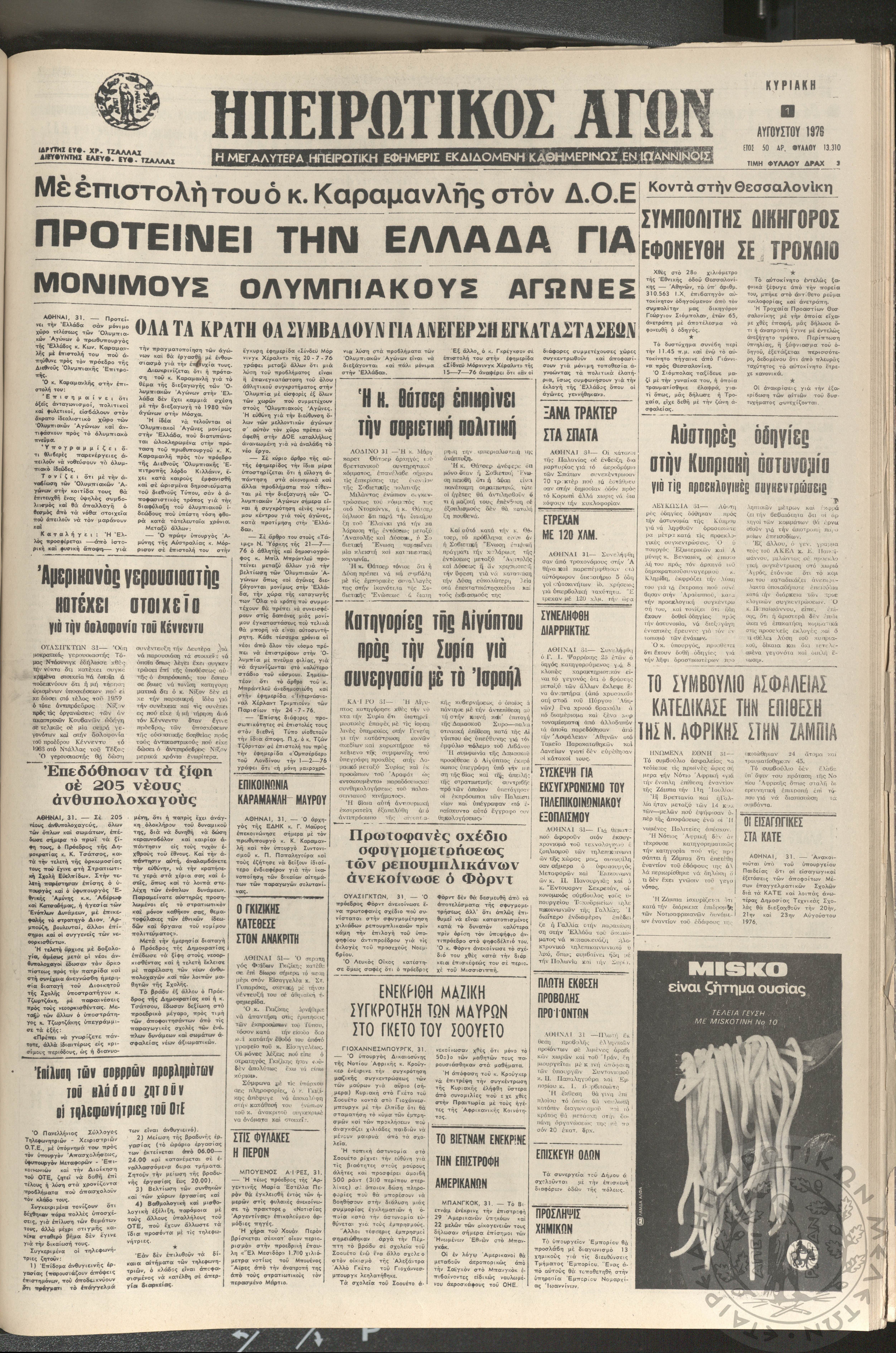 Ηπειρωτικός Αγών : η μεγαλυτέρα ηπειρωτική εφημερίς εκδιδόμενη καθημερινώς εν Ιωαννίνοις 1976 (φ. 13310)Έτος 50, φ. 13310...