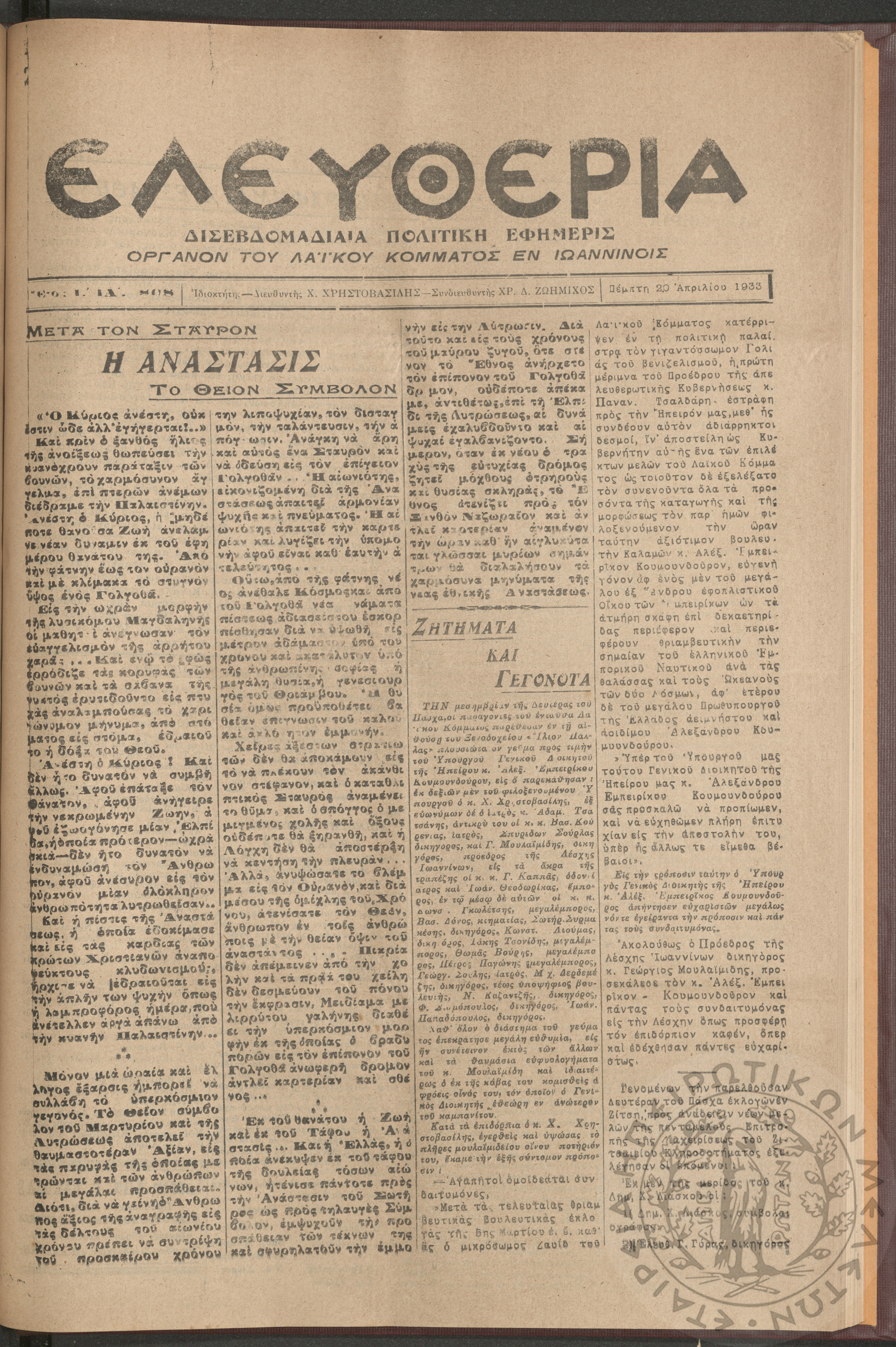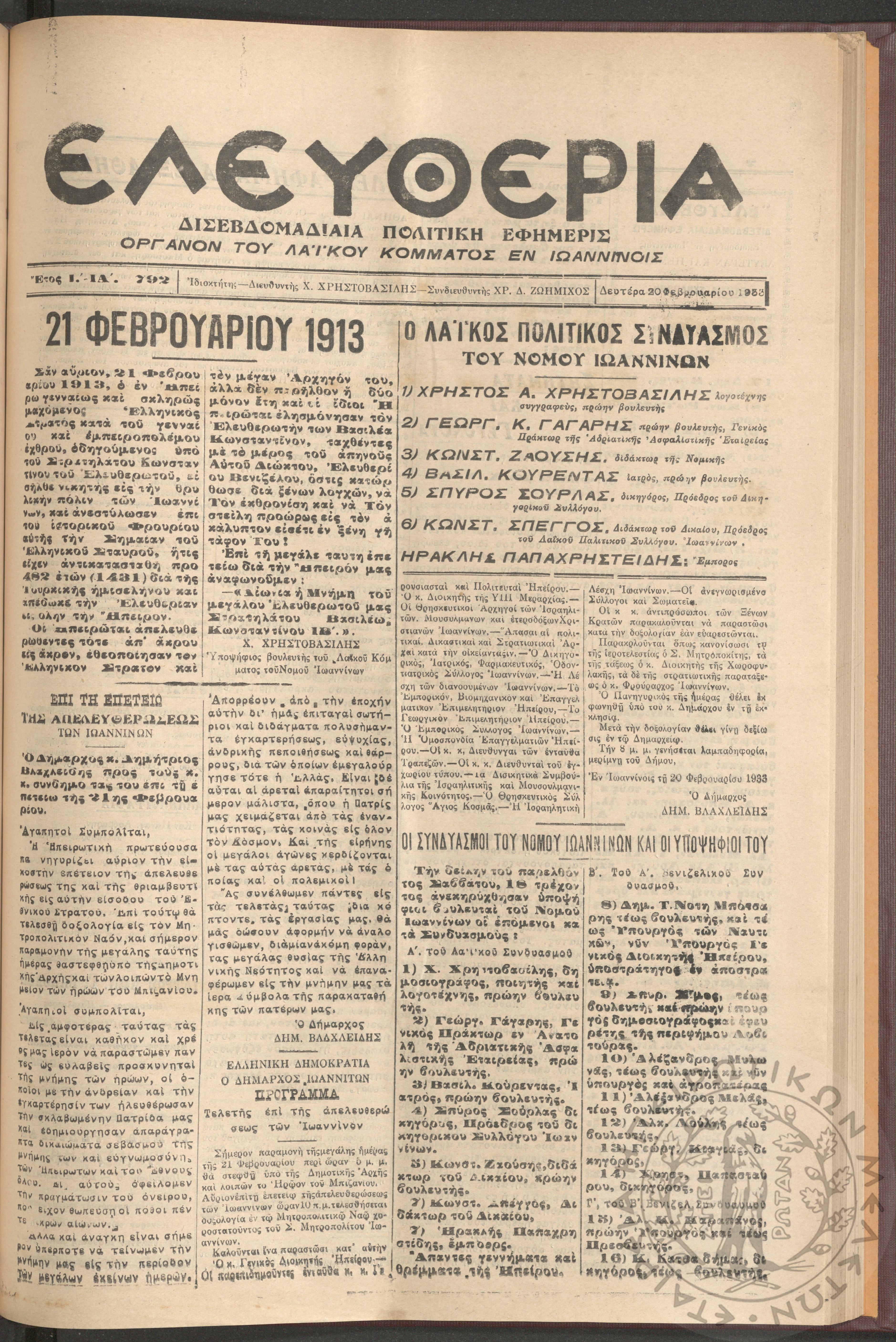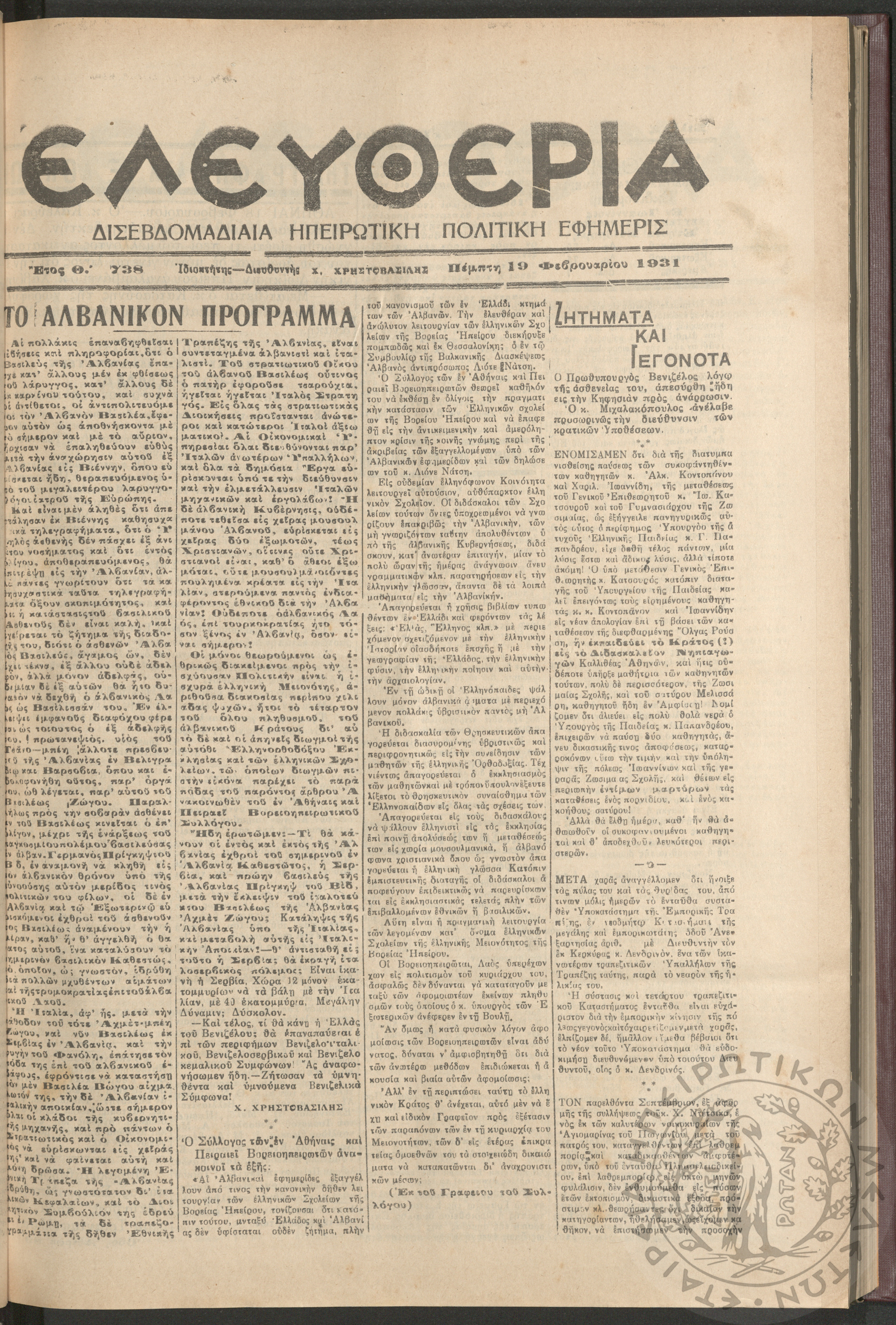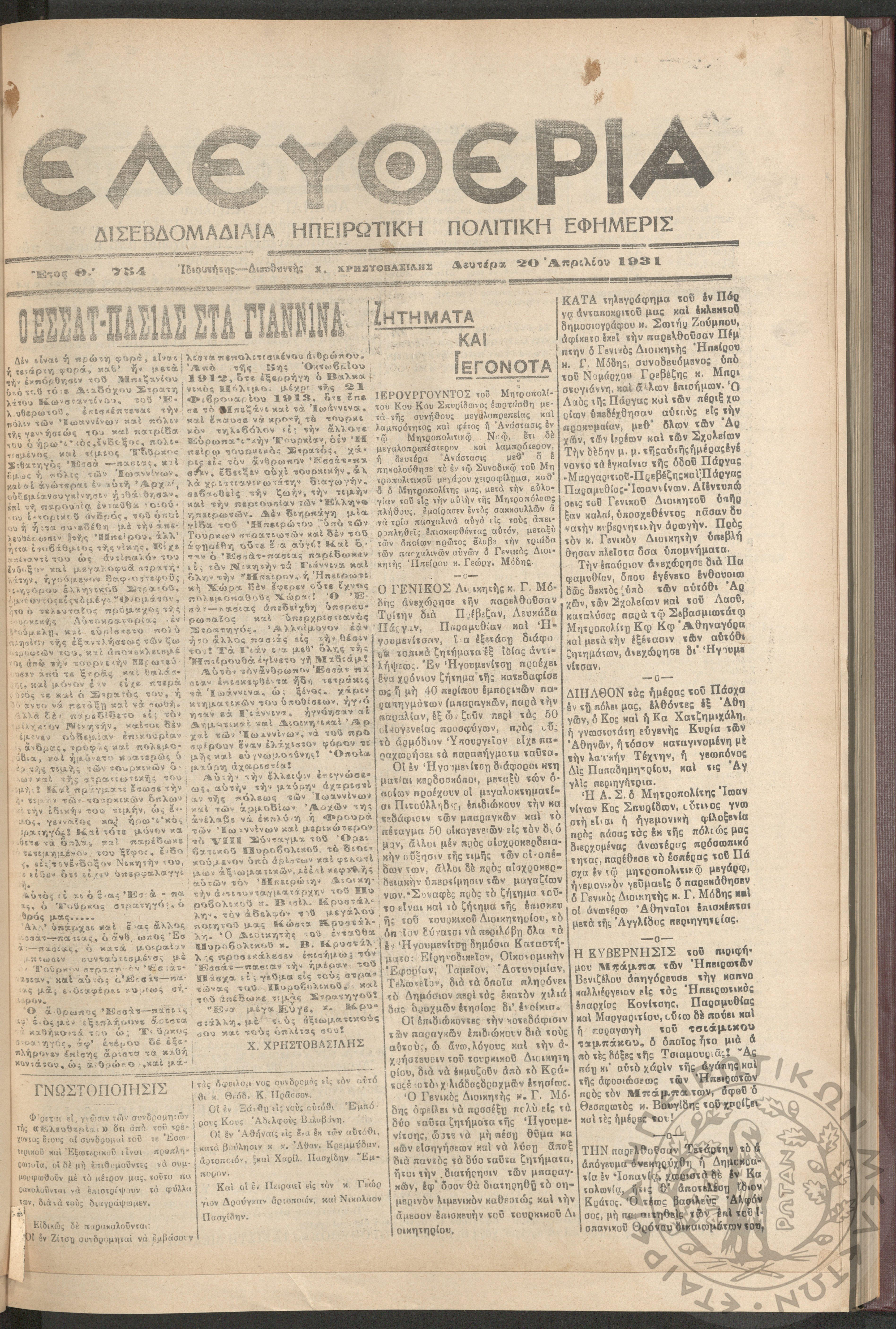 Ηπειρωτικός Αγών : η μεγαλυτέρα ηπειρωτική εφημερίς εκδιδόμενη καθημερινώς εν Ιωαννίνοις 1976 (φ. 13310)Έτος 50, φ. 13310...