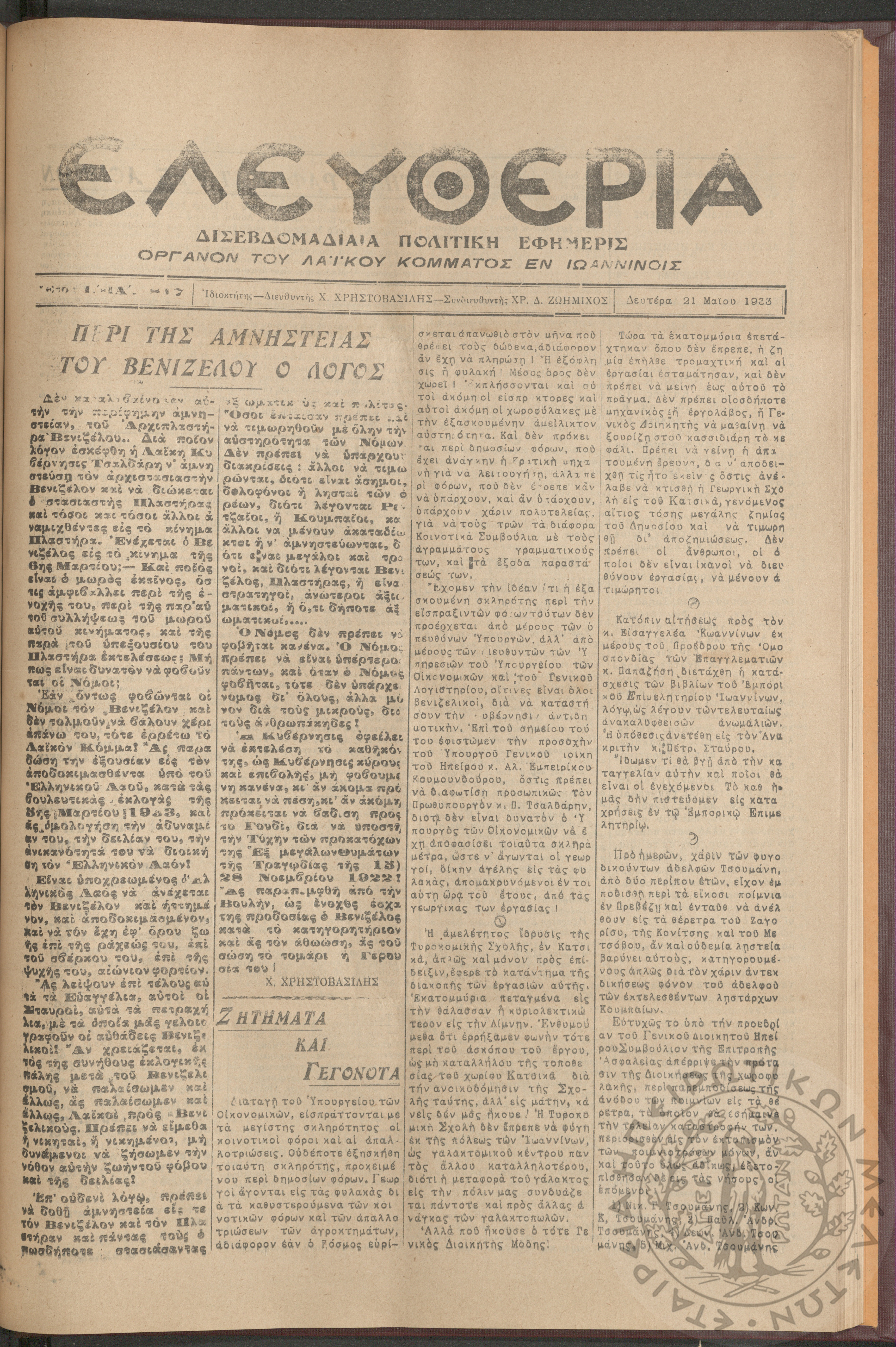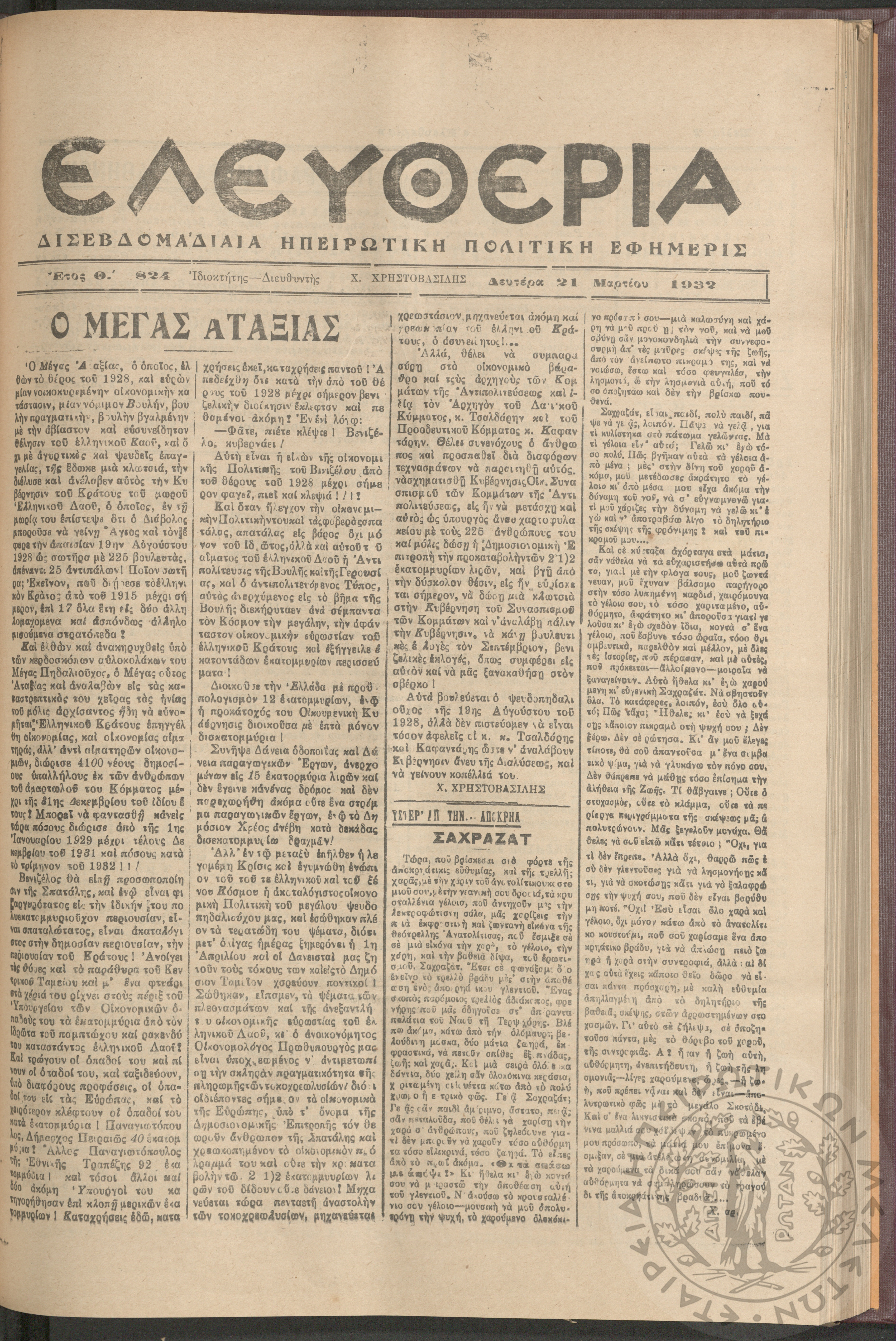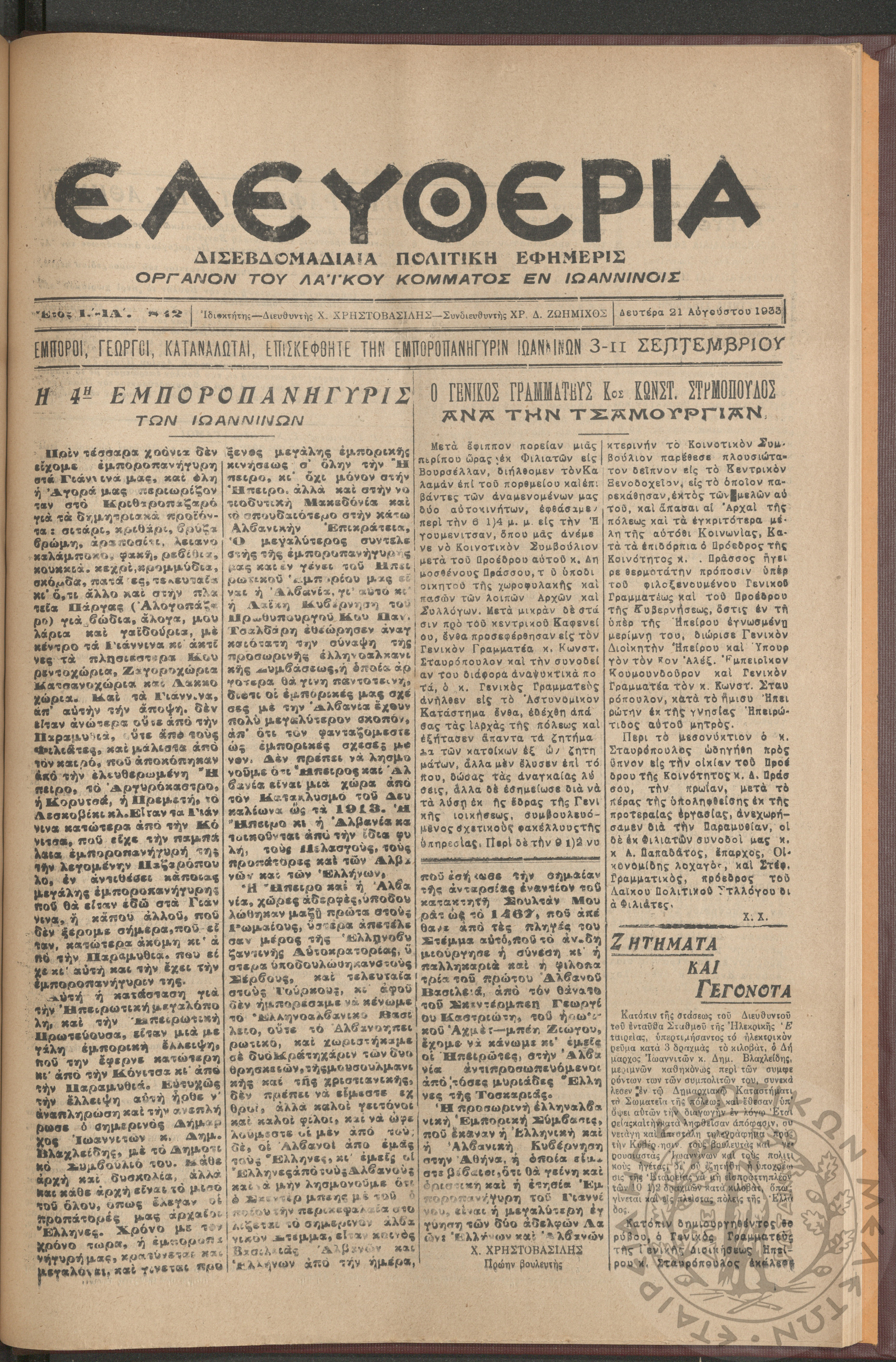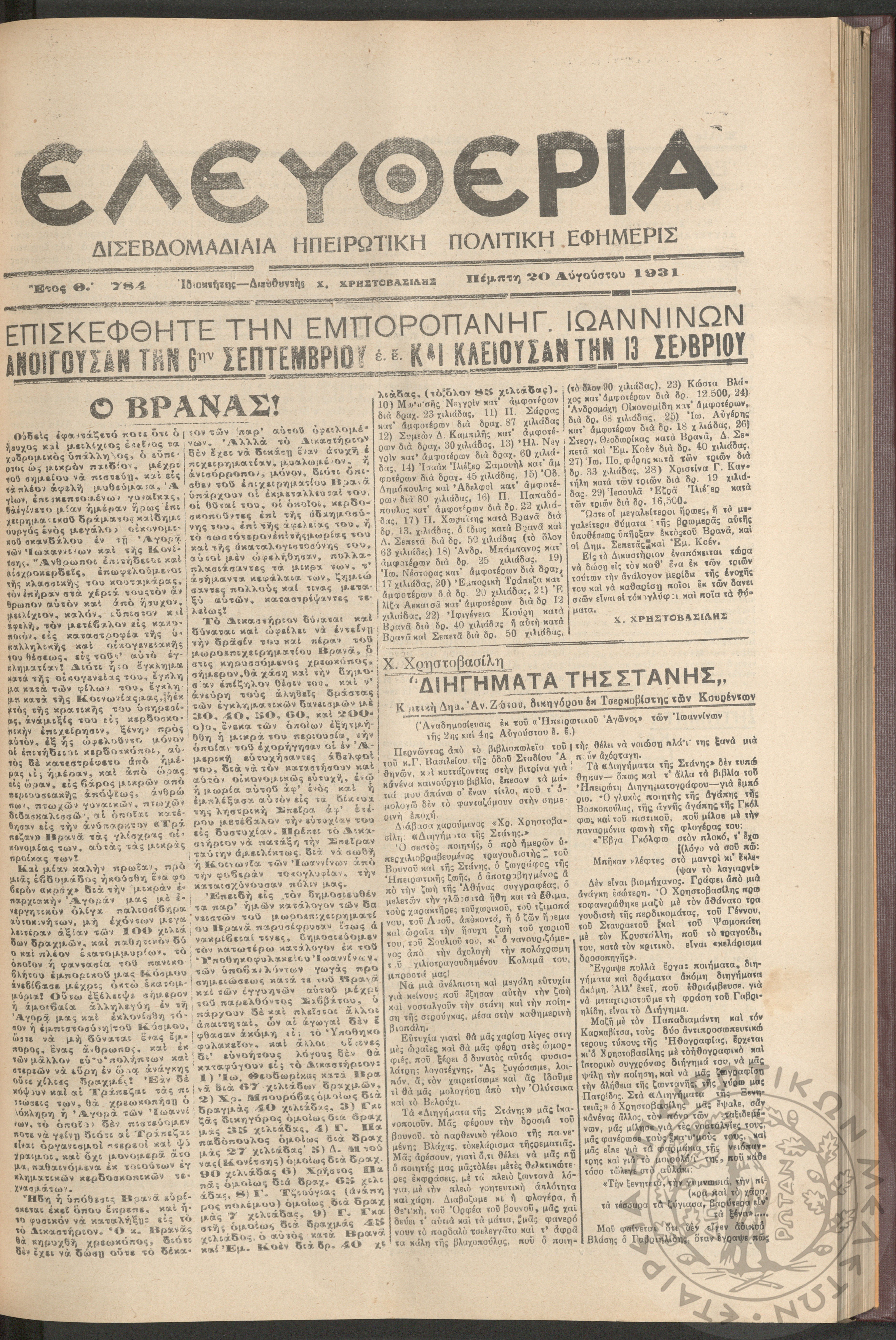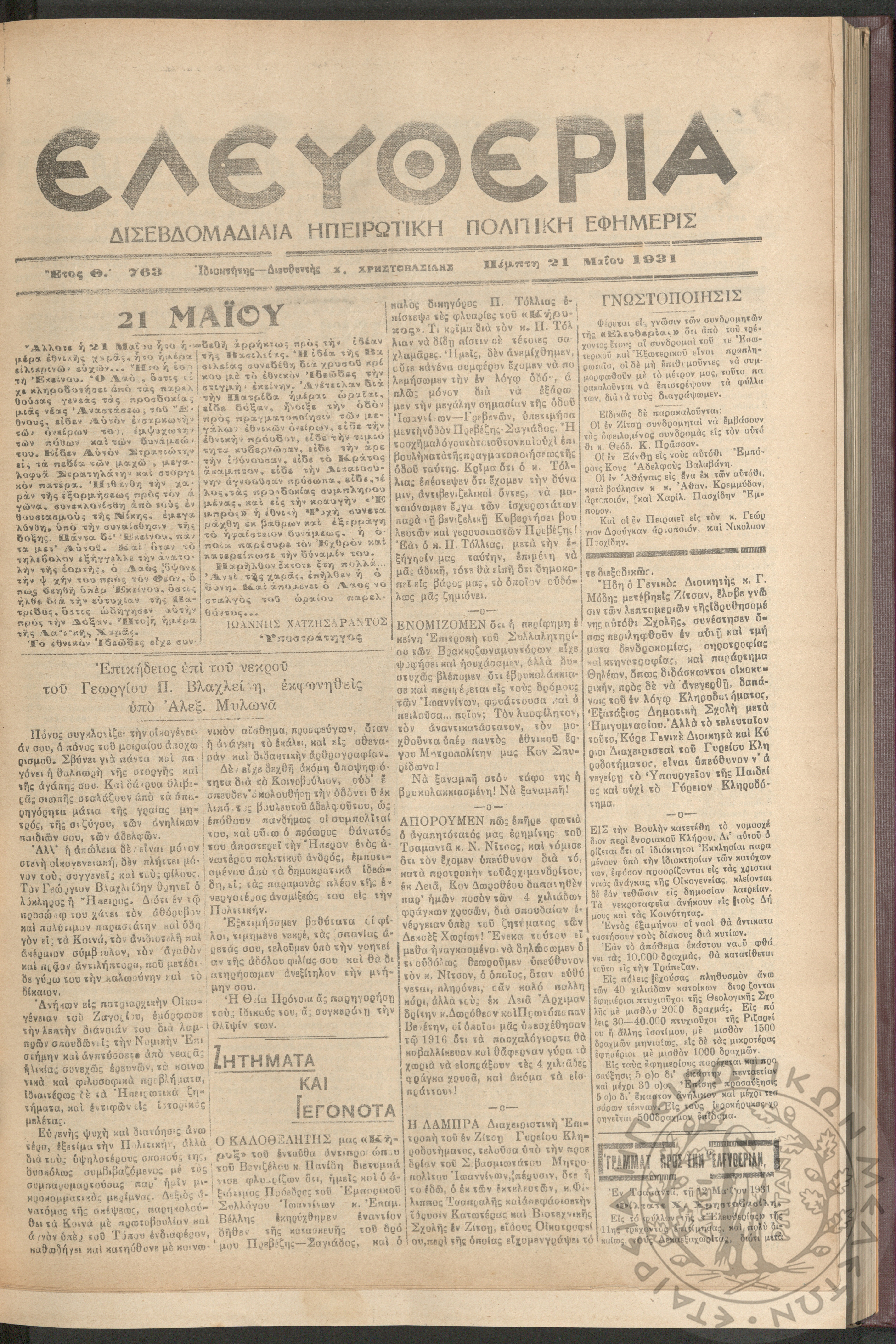 Ηπειρωτικός Αγών : η μεγαλυτέρα ηπειρωτική εφημερίς εκδιδόμενη καθημερινώς εν Ιωαννίνοις 1976 (φ. 13310)Έτος 50, φ. 13310...