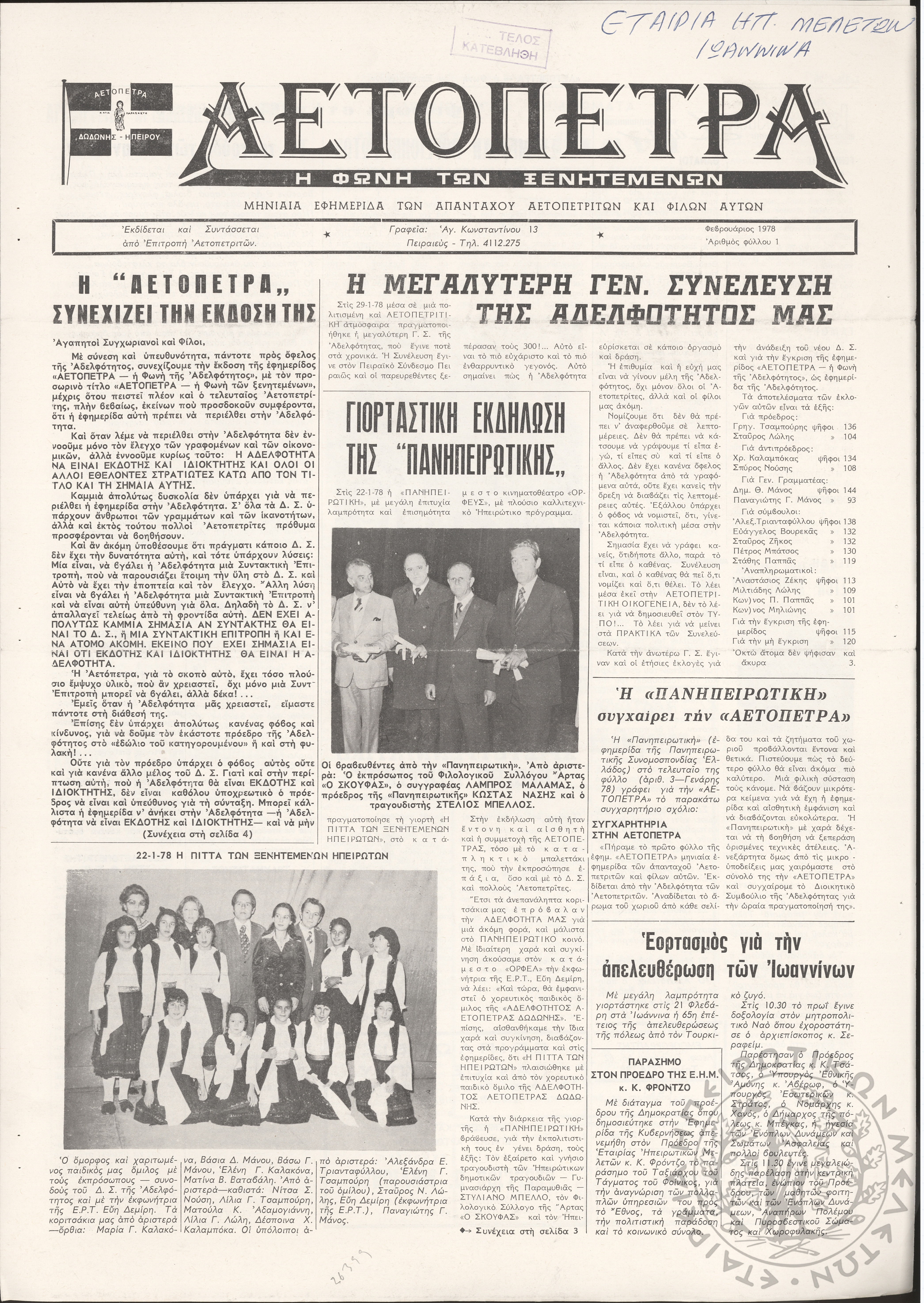 Αετόπετρα: η φωνή των ξενητεμένων: μηνιαία εφημερίδα των απανταχού Αετοπετριτών και φίλων αυτών, 1978, φ. 1...